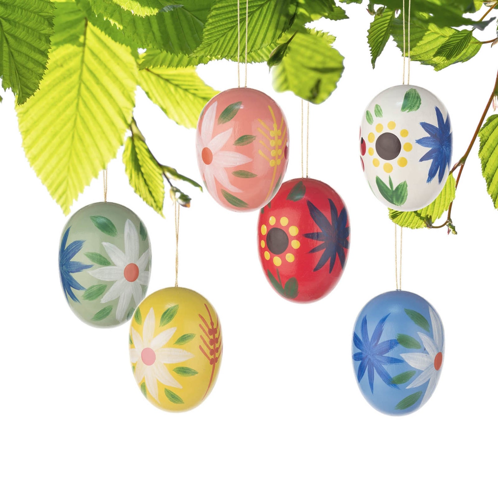 6 Erzgebirge Wood Easter Egg Ornaments Made in Germany New Holiday Decorations