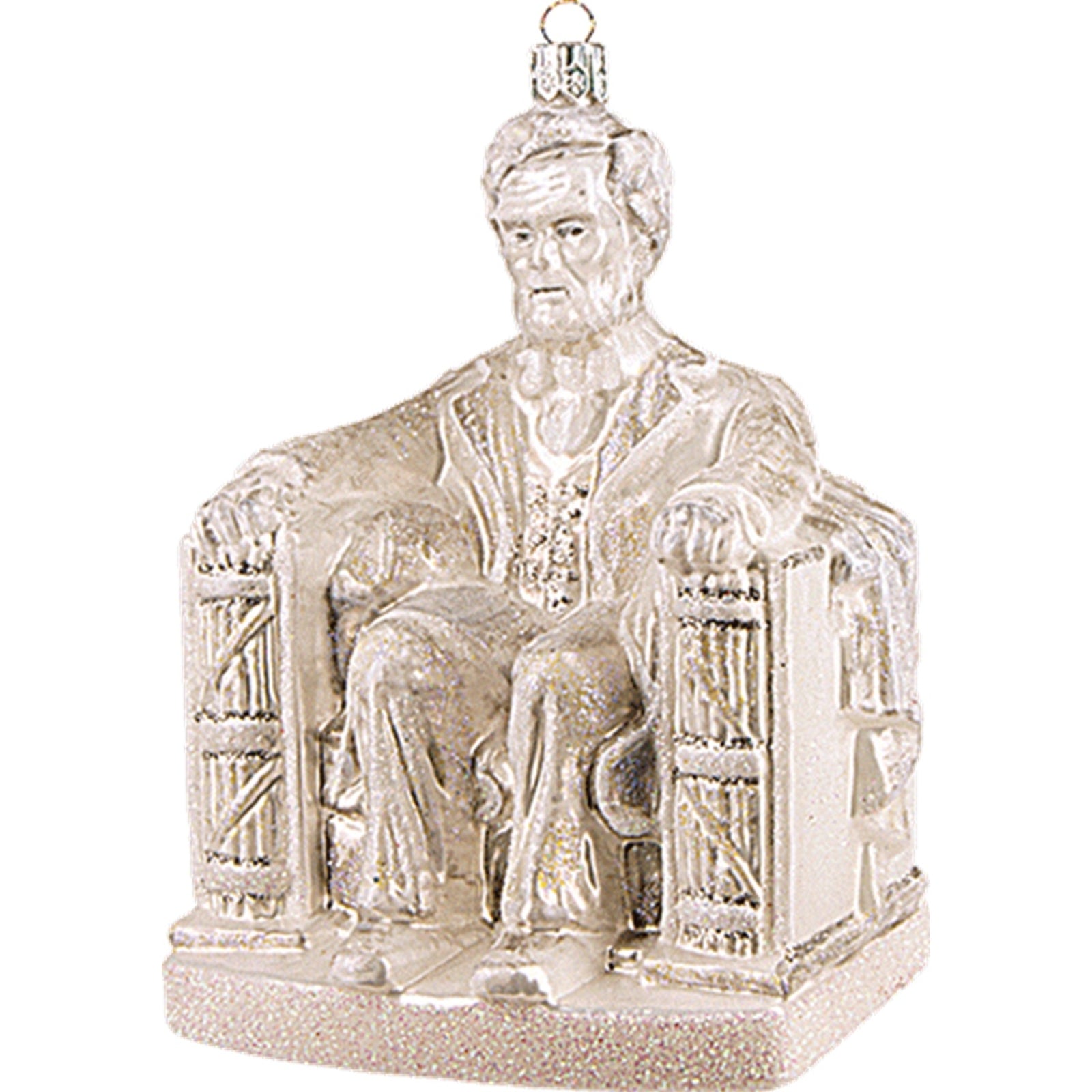 Lincoln Memorial Ornament. Handcrafted in Poland. Hand-painted by Polish artisans. Made from mouth blown glass. Approximately 5 inches tall (13cm). Includes original Pinnacle Peak Trading box and packaging. Imported by Pinnacle Peak Trading Company.