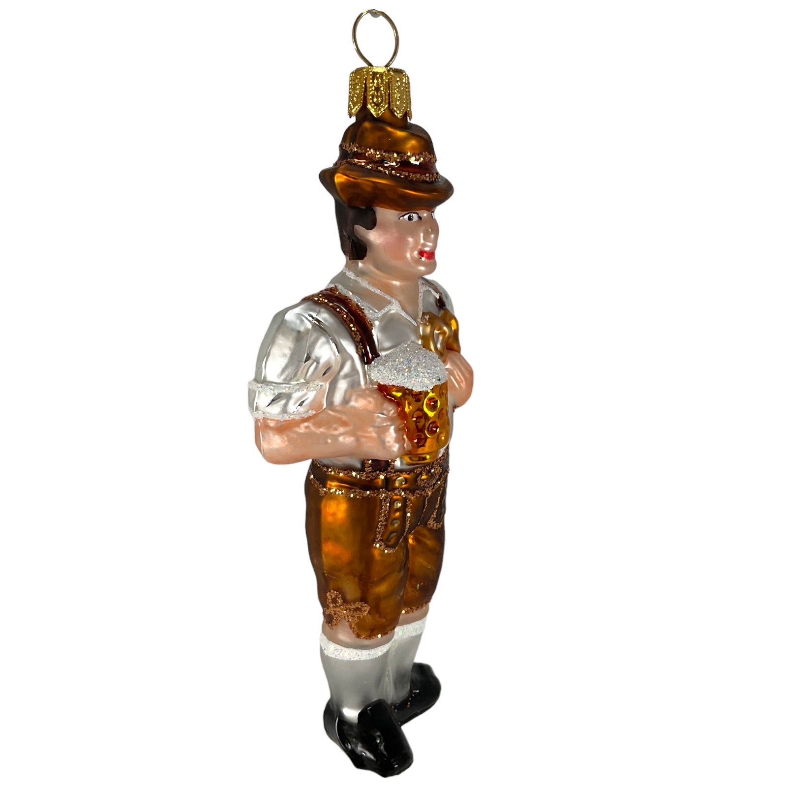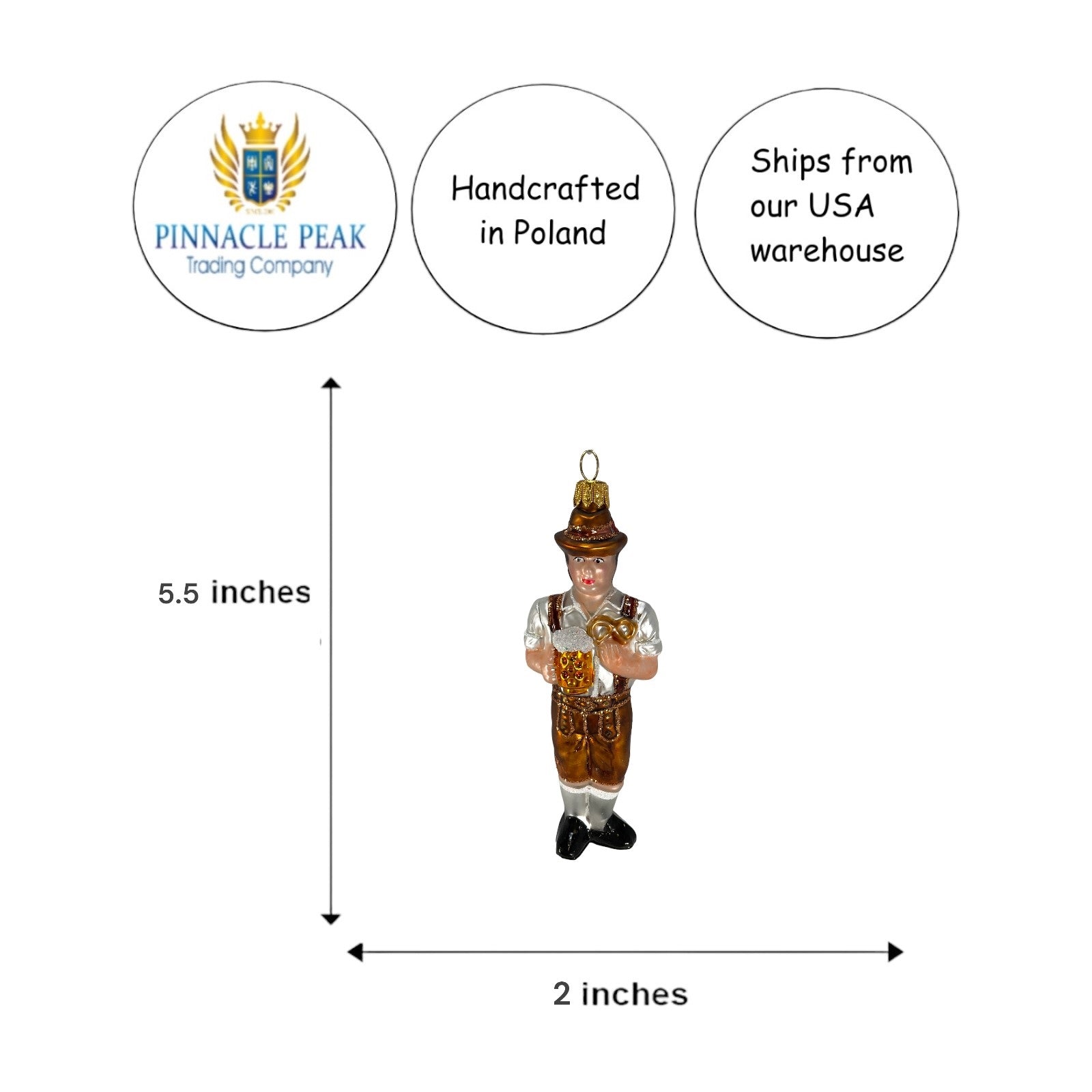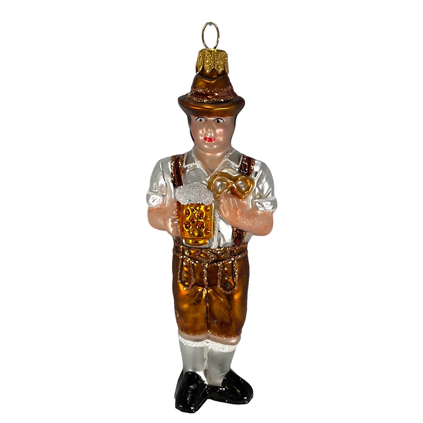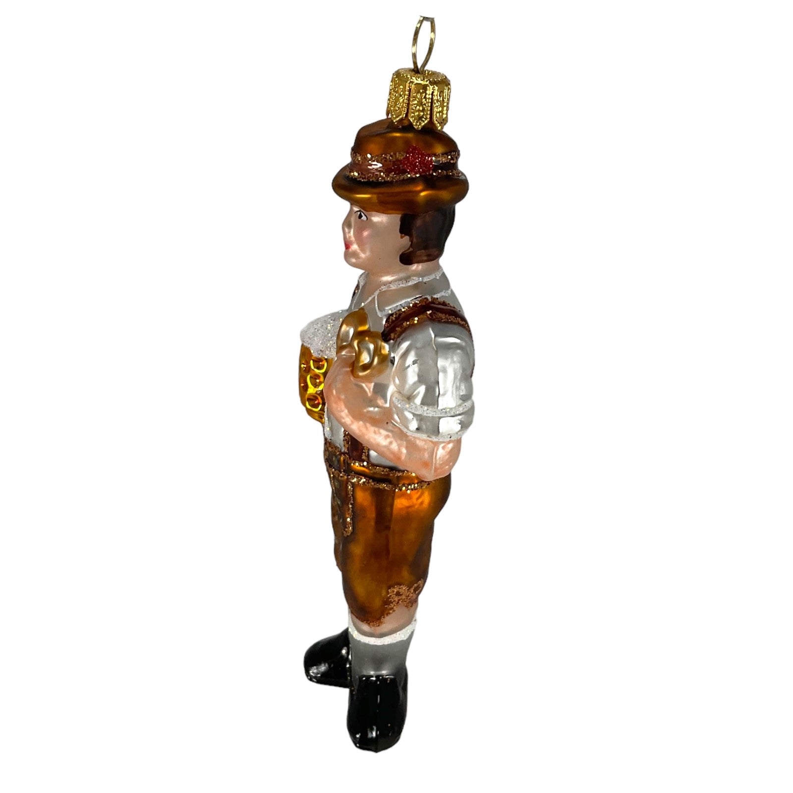 Bavarian Man Pretzel and Beer Polish Blown Glass Christmas Ornament Decoration