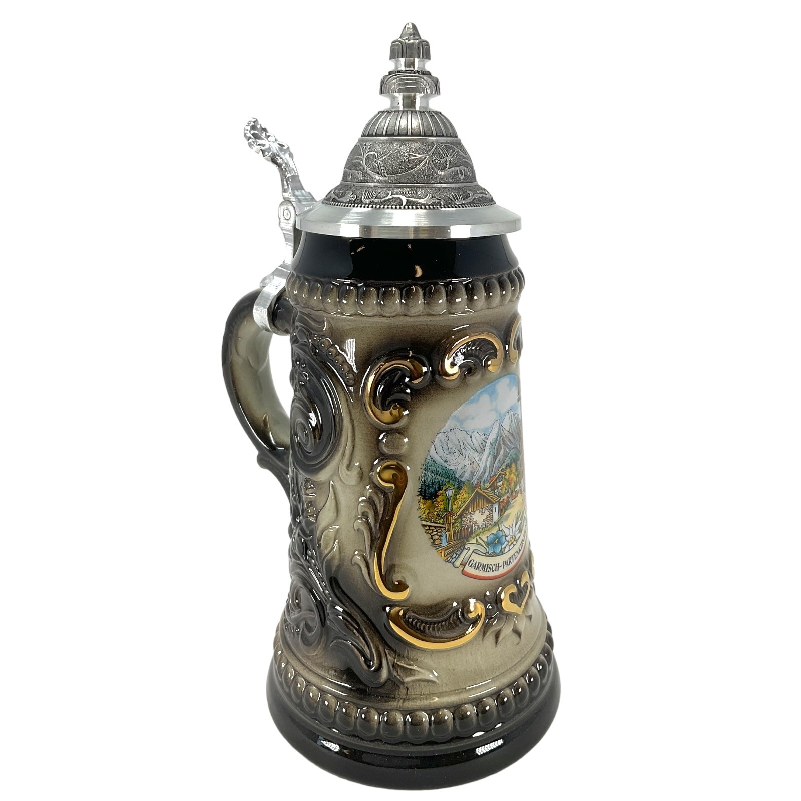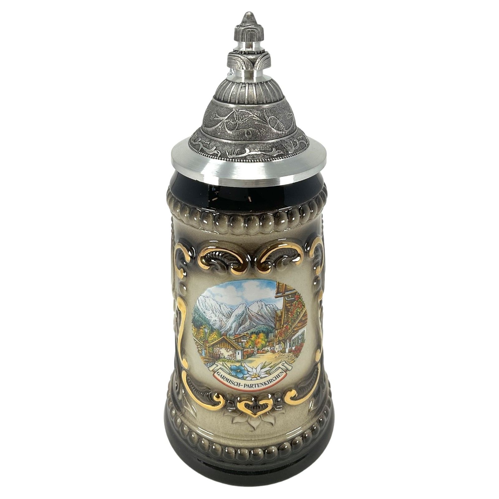 - This German beer stein features a scene from Garmisch-Partenkirchen, the mountain resort town in Bavaria, southern Germany.