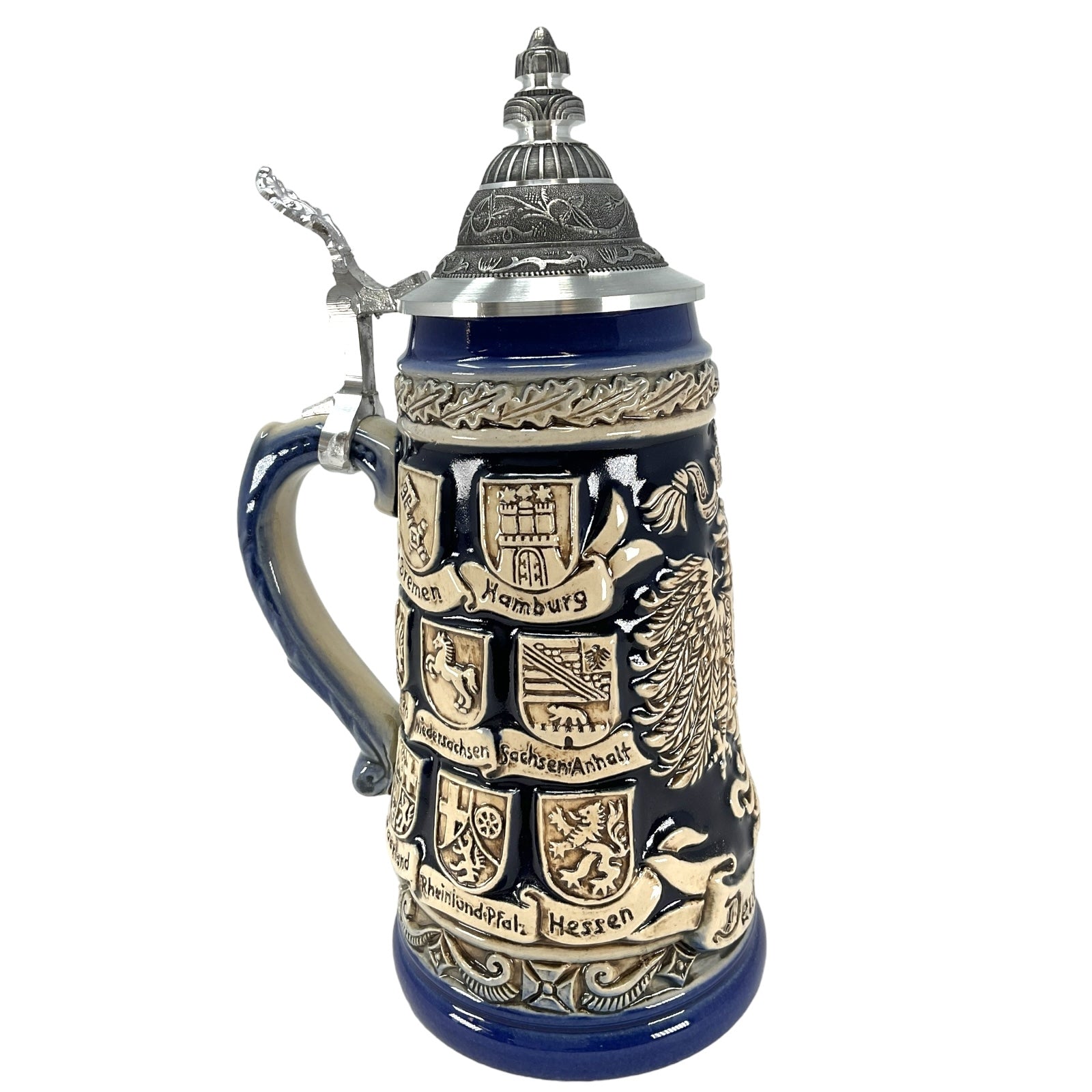 Blue Crest Deutschland German Beer Stein .25L One New Mug Made in Germany