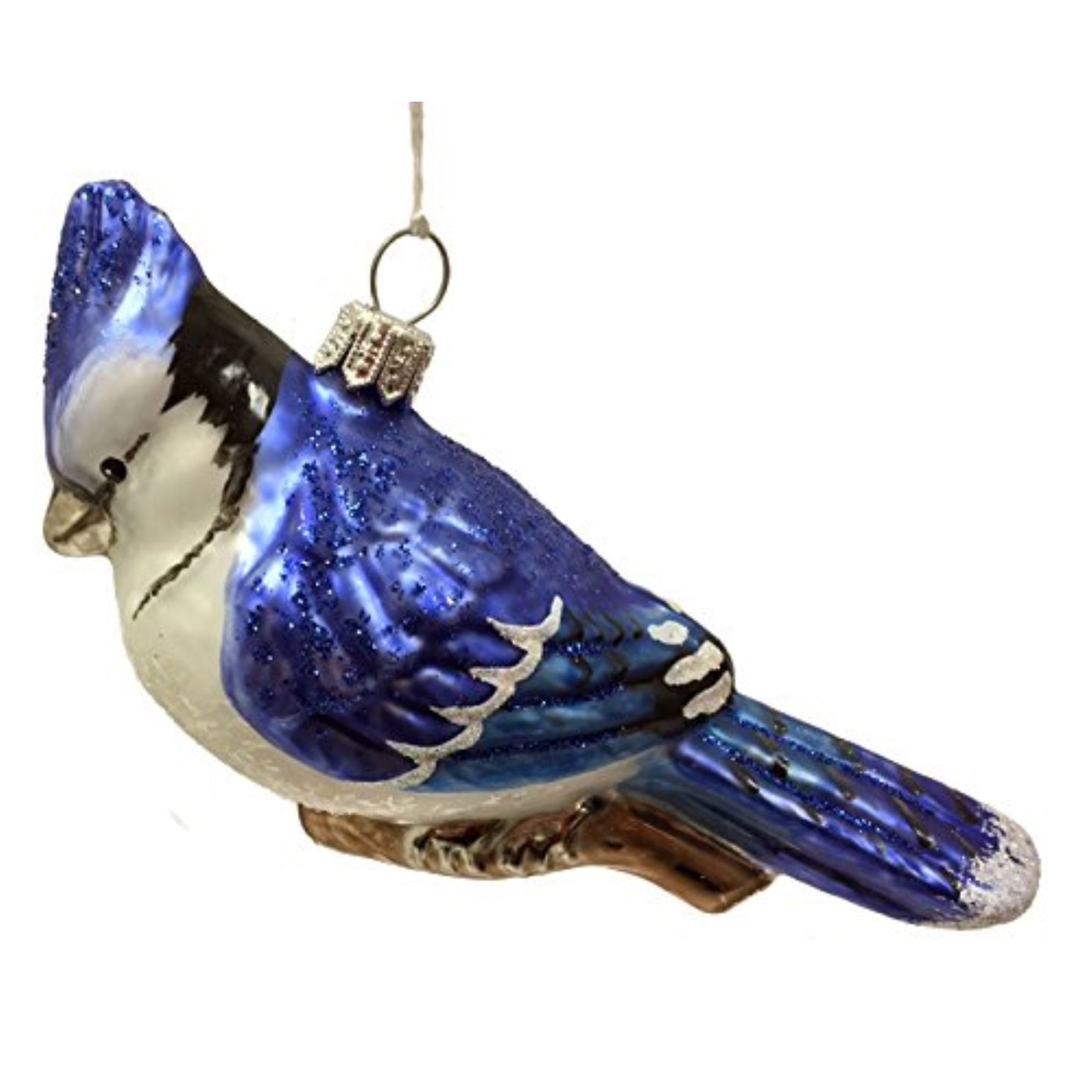 Blue Jay Sitting on Branch Polish Glass Christmas Tree Ornament Wildlife Animal