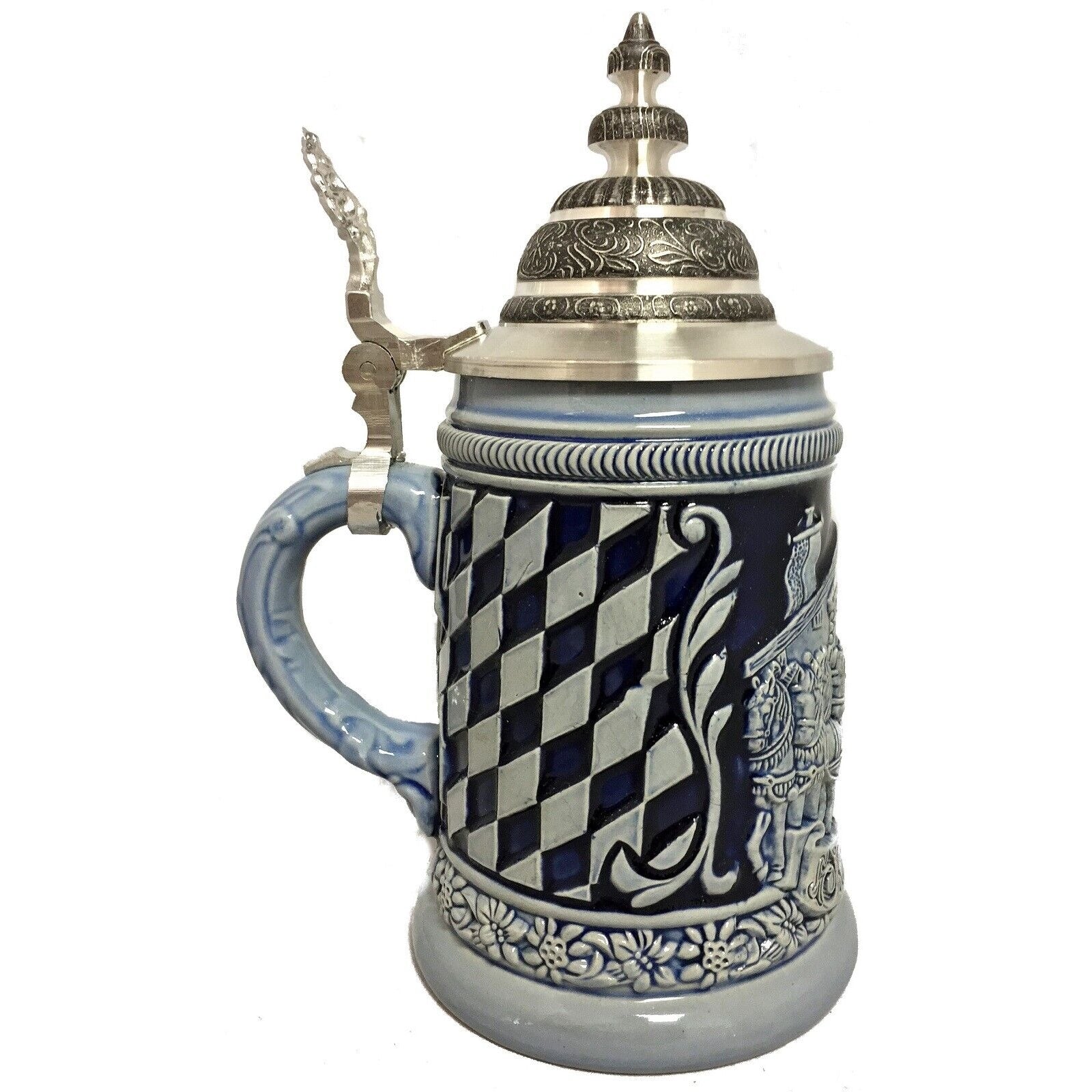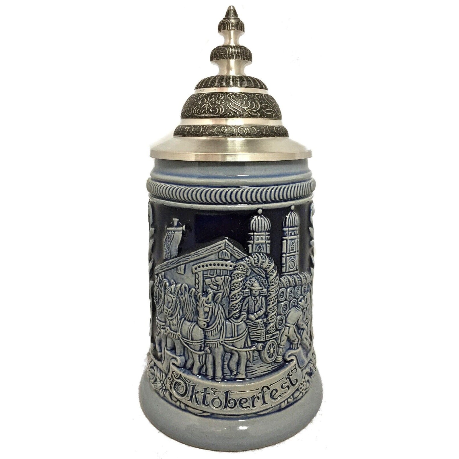 Blue Oktoberfest Festival with Horse Drawn Beer Wagon German Beer Stein .5 L