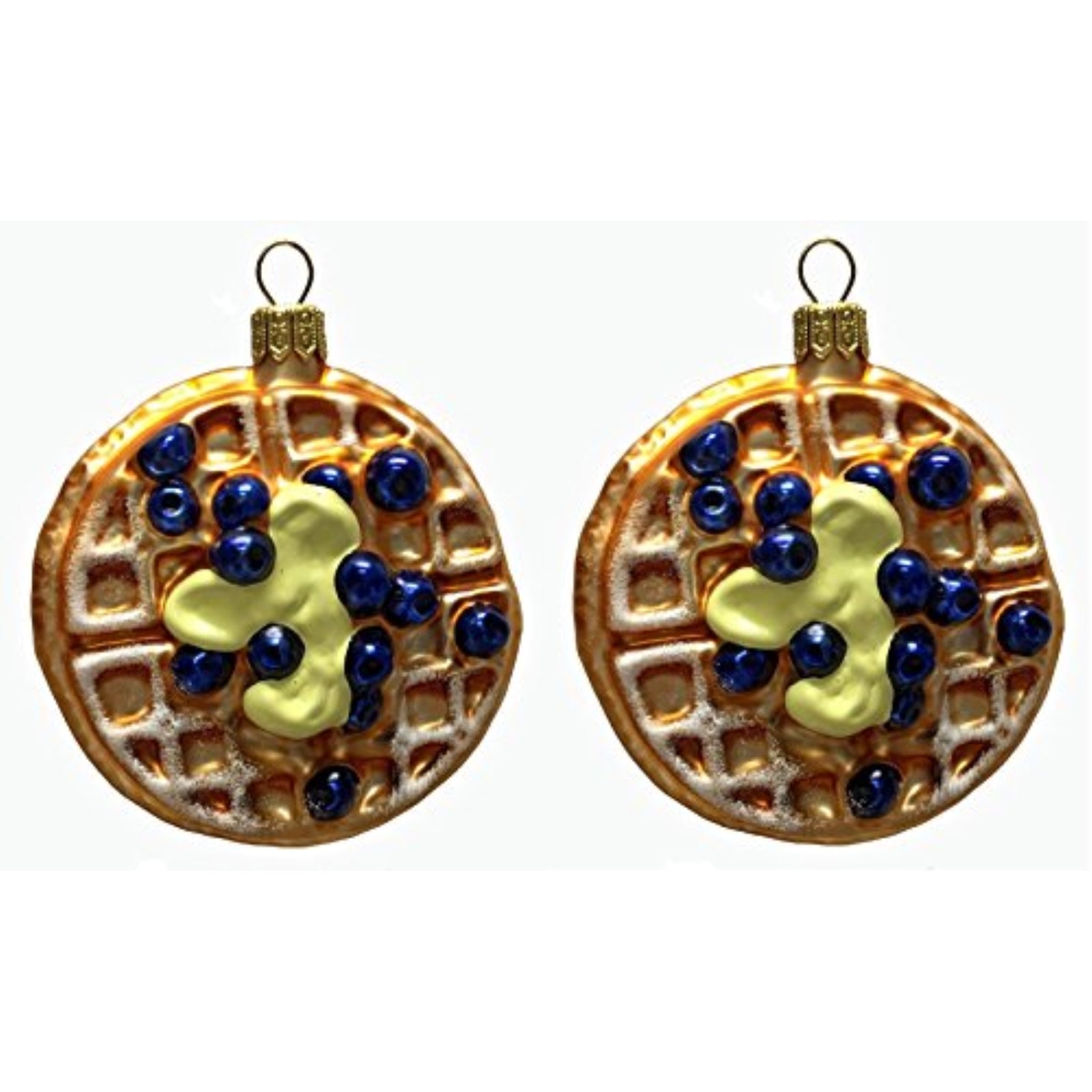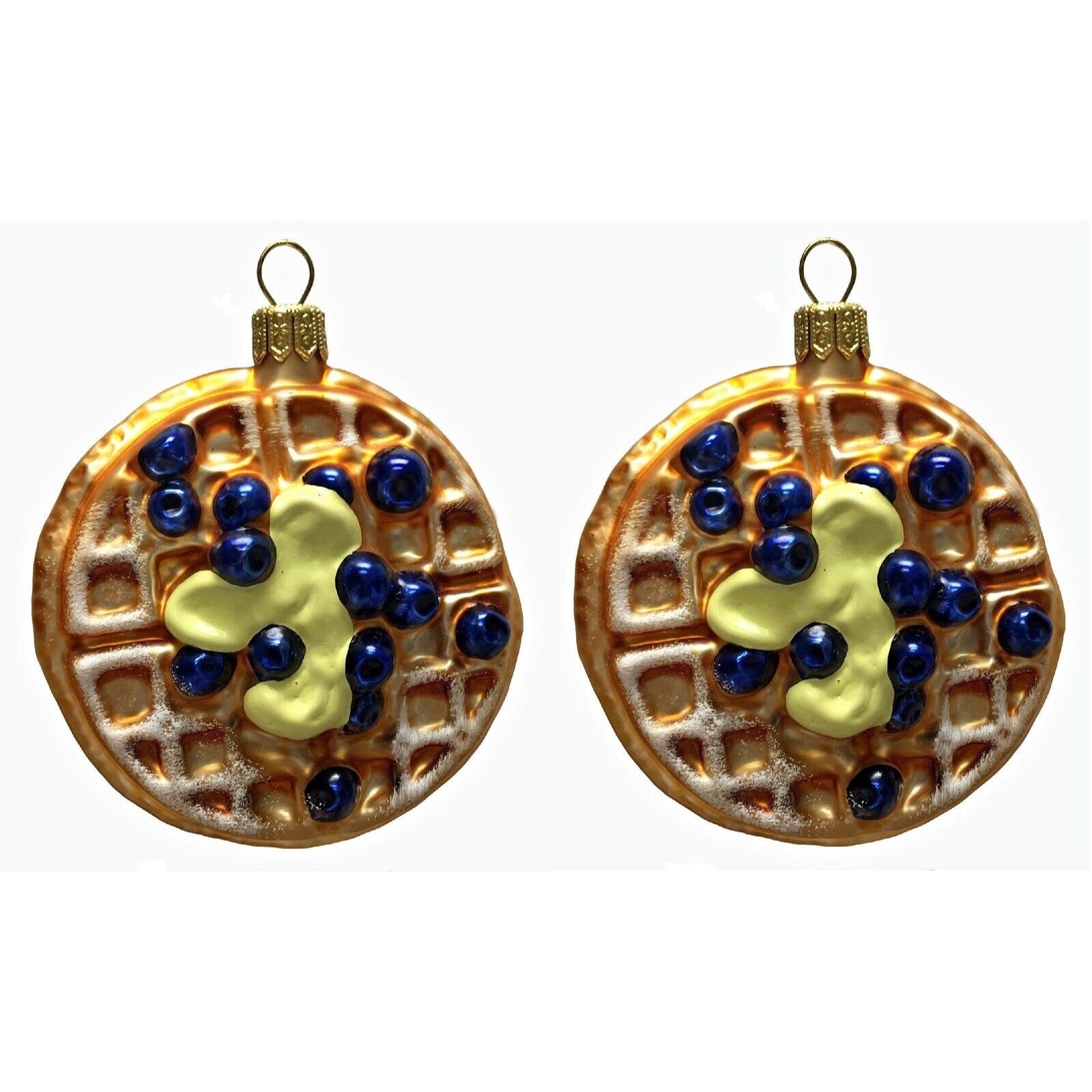 Blueberry Waffles with Butter Polish Glass Christmas Tree Ornament Set of 2 Food