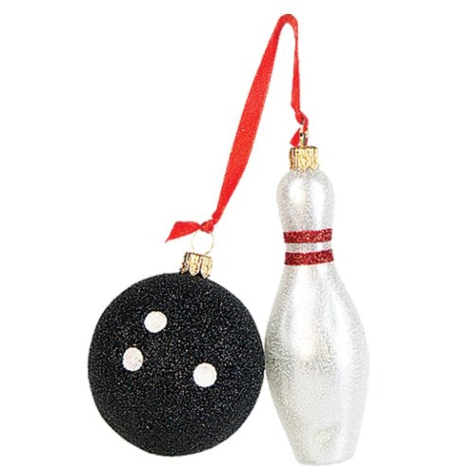 Bowling Ball and Pin Polish Glass Christmas Ornament Set Tree Decoration