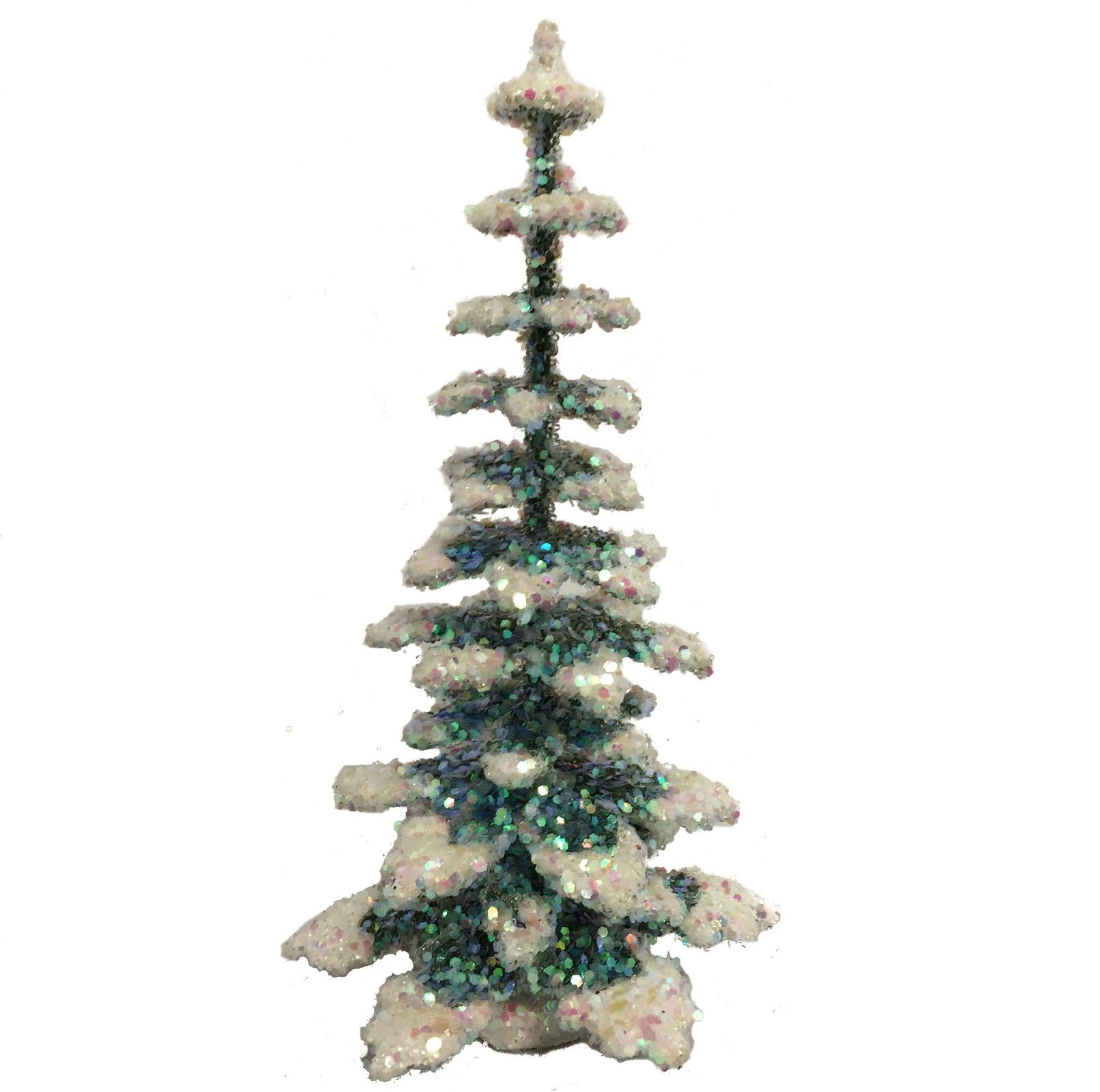Ino Schaller Small Glistening Spruce Tree German Christmas Paper Mache 6 Inch