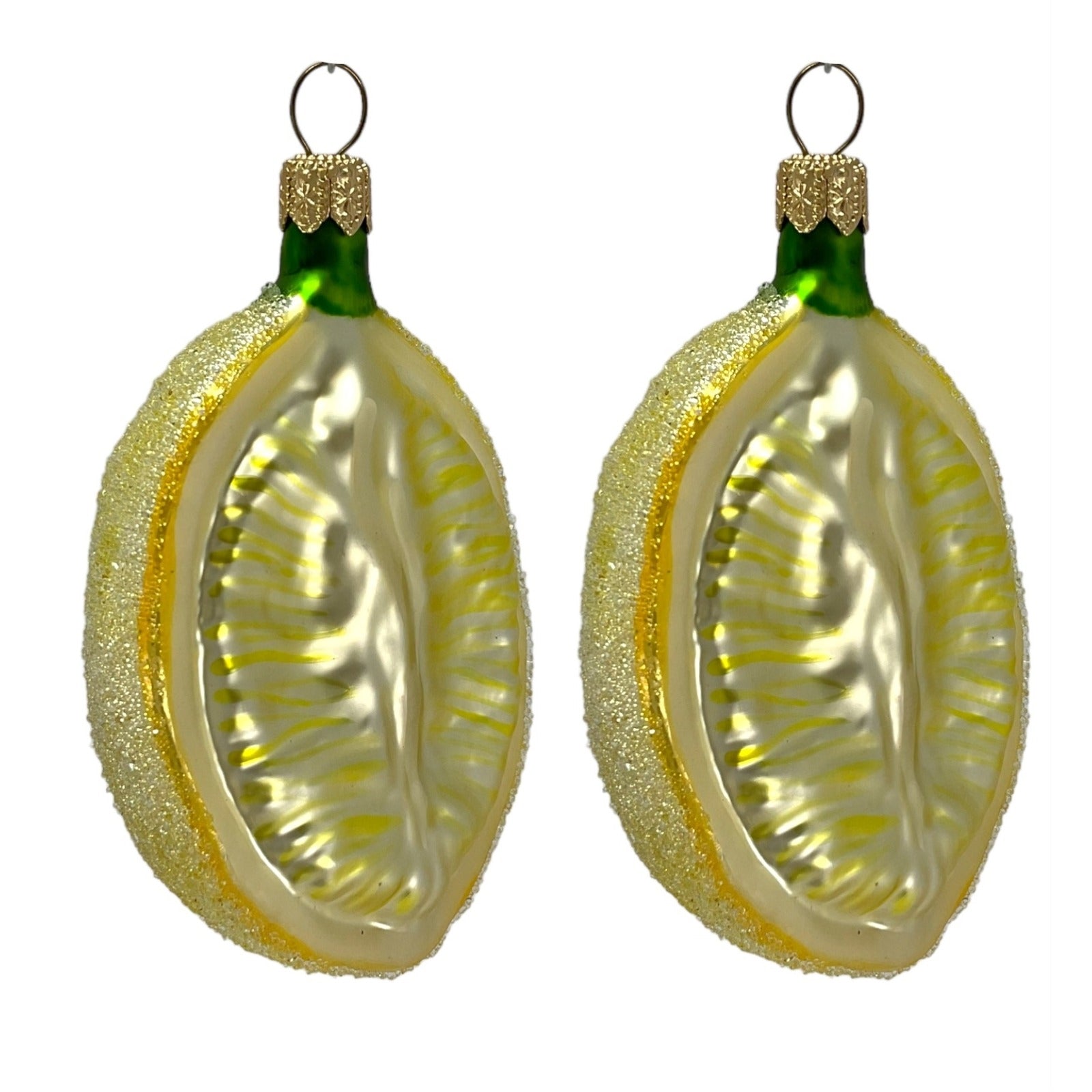 Lemon Polish Glass Christmas Tree Ornaments Set of 2