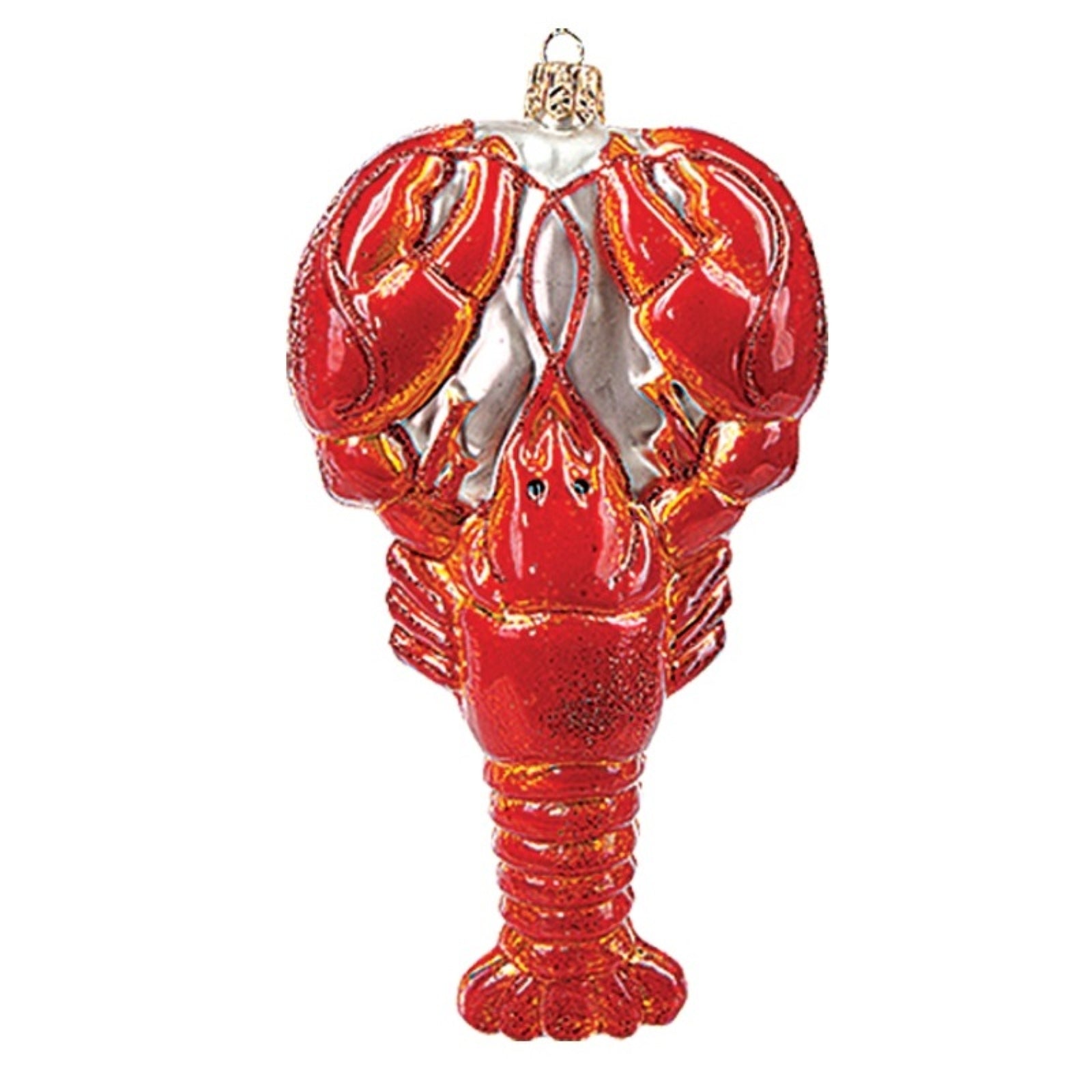 Lobster Ornament. Made in Poland. Imported by Pinnacle Peak Trading Company. Mouth blown and hand painted. Made from glass. Approximately 5 inches tall (13cm). Comes packaged in a gift box.