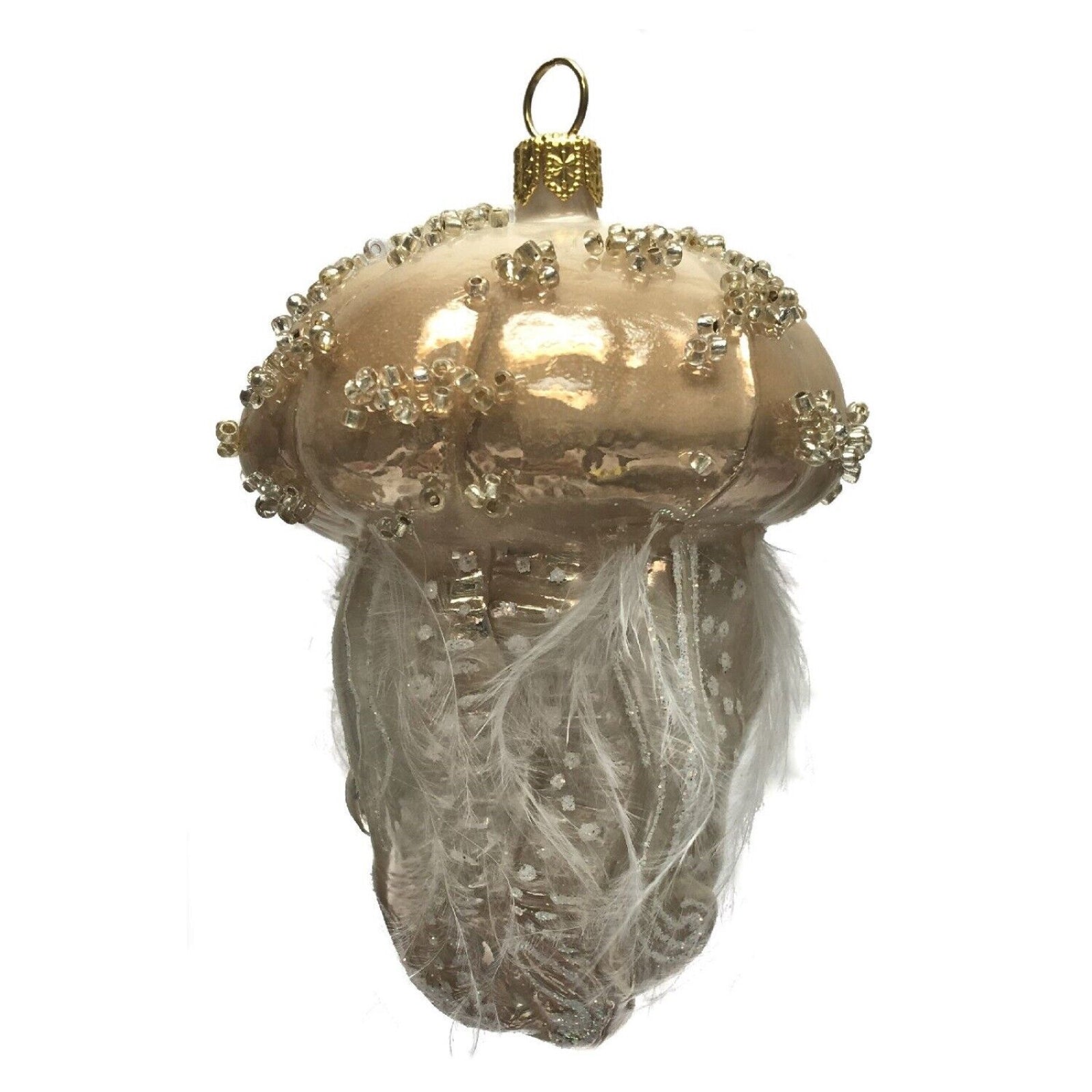Pinnacle Peak Trading Brown Beaded Jellyfish with Feather Tentacles Polish Glass Christmas Ornament