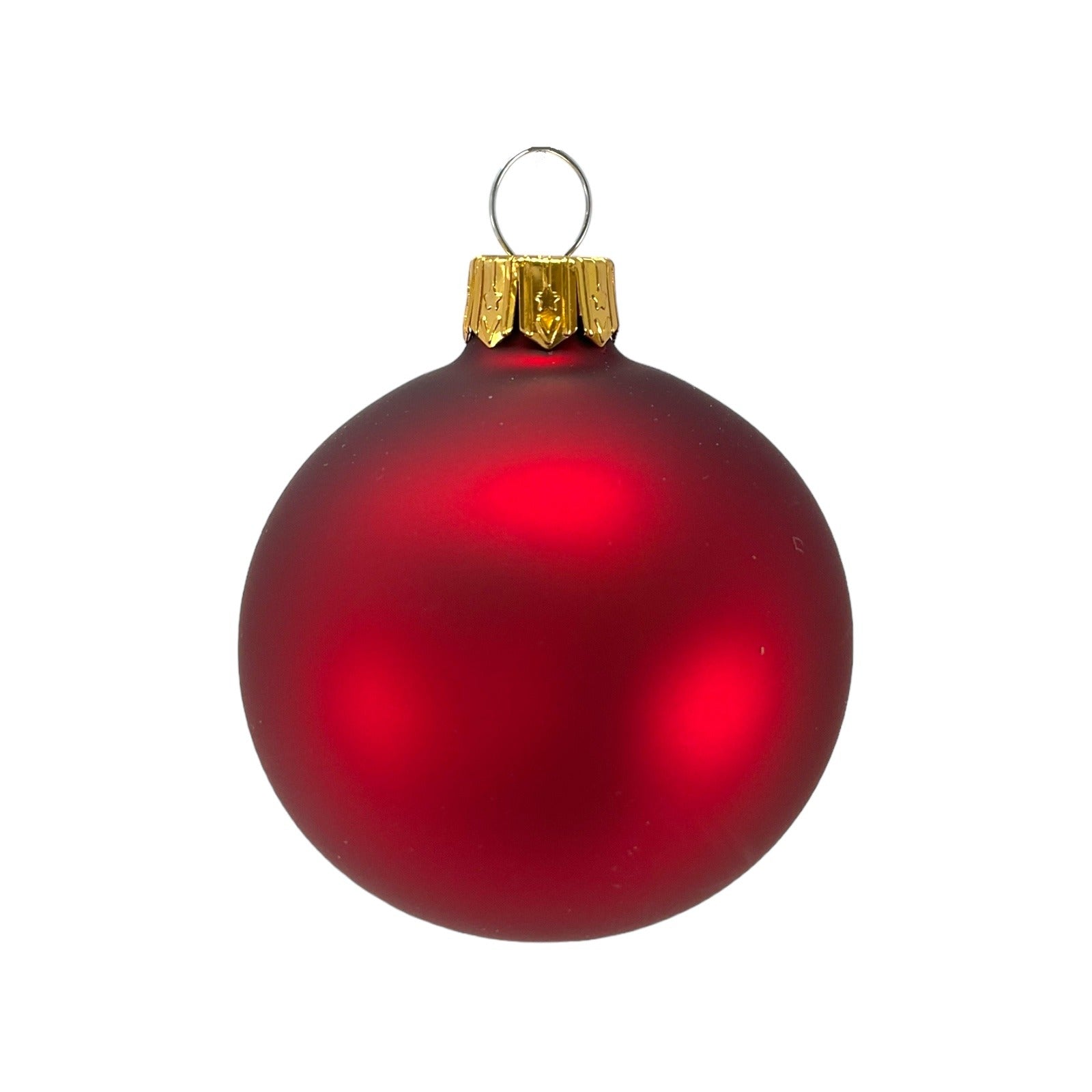 Burgundy Christmas Ball Set. Set includes 6 ornaments - 3 matte and 3 shiny. Made in Poland. Made from glass. Balls are 60 mm in size (2.4 inch). High quality European ornament from Pinnacle Peak Trading.