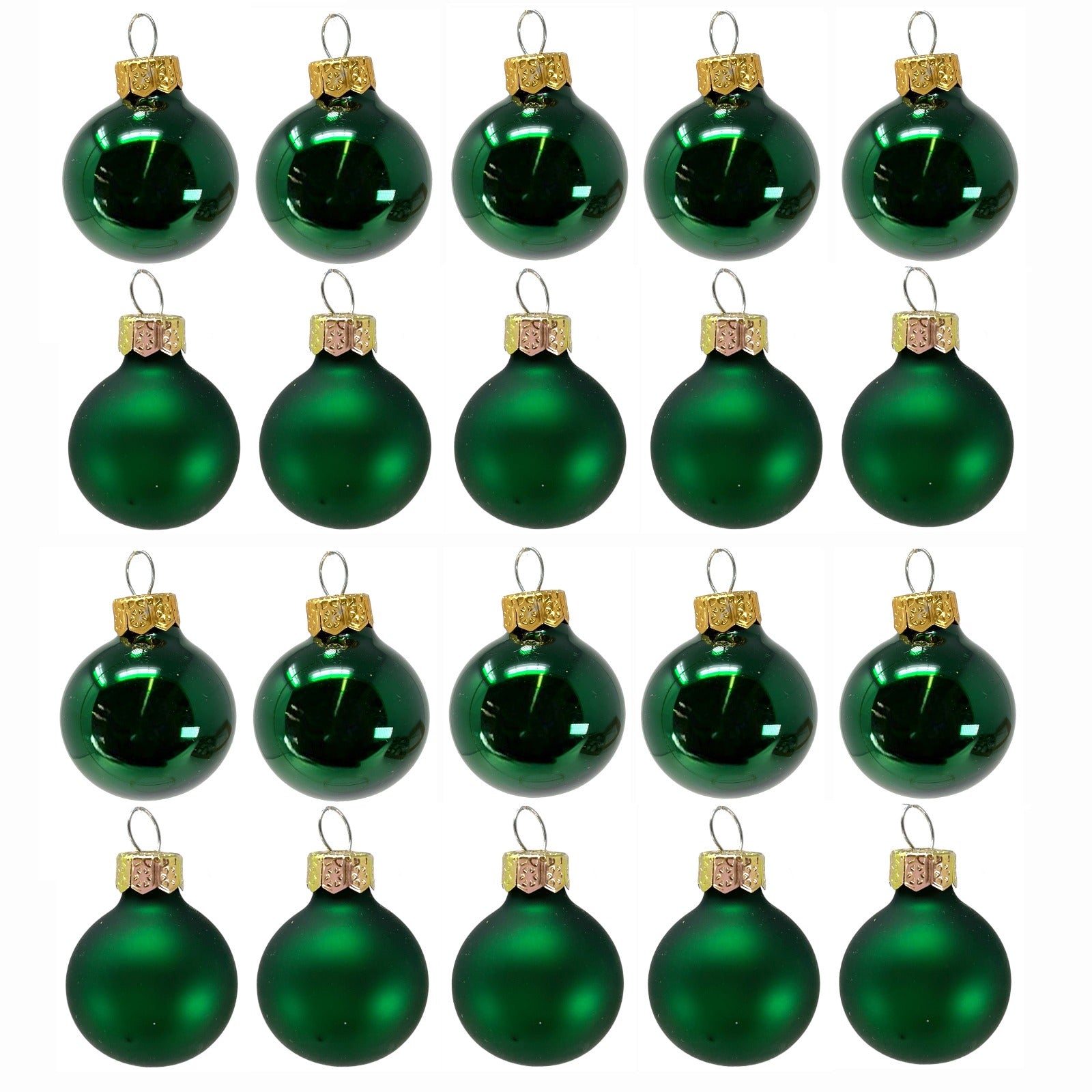 Christmas Green Ball Set. Set includes 20 ornaments - 10 matte and 10 shiny. Made in Poland. Made from glass. Balls are 30 mm in size (1.2 inch). High quality European ornament from Pinnacle Peak Trading.