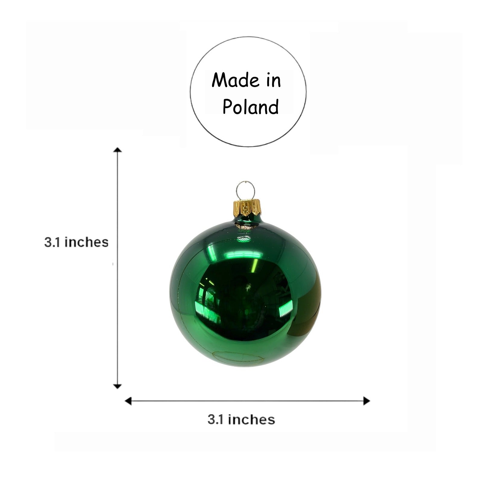 Christmas Green Ornament Ball Set. Set includes 6 ornaments - 3 matte and 3 shiny. Made in Poland. Made from glass. Balls are 80 mm in size (3.1 inch). High quality European ornament from Pinnacle Peak Trading.