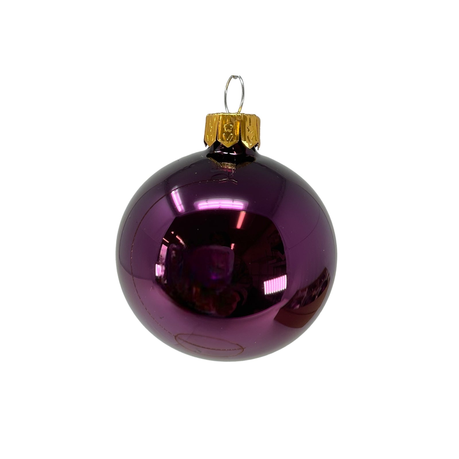 Dark Purple Christmas Ball Set. Set includes 6 ornaments - 3 matte and 3 shiny. Made in Poland. Made from glass. Balls are 60 mm in size (2.4 inch). High quality European ornament from Pinnacle Peak Trading.
