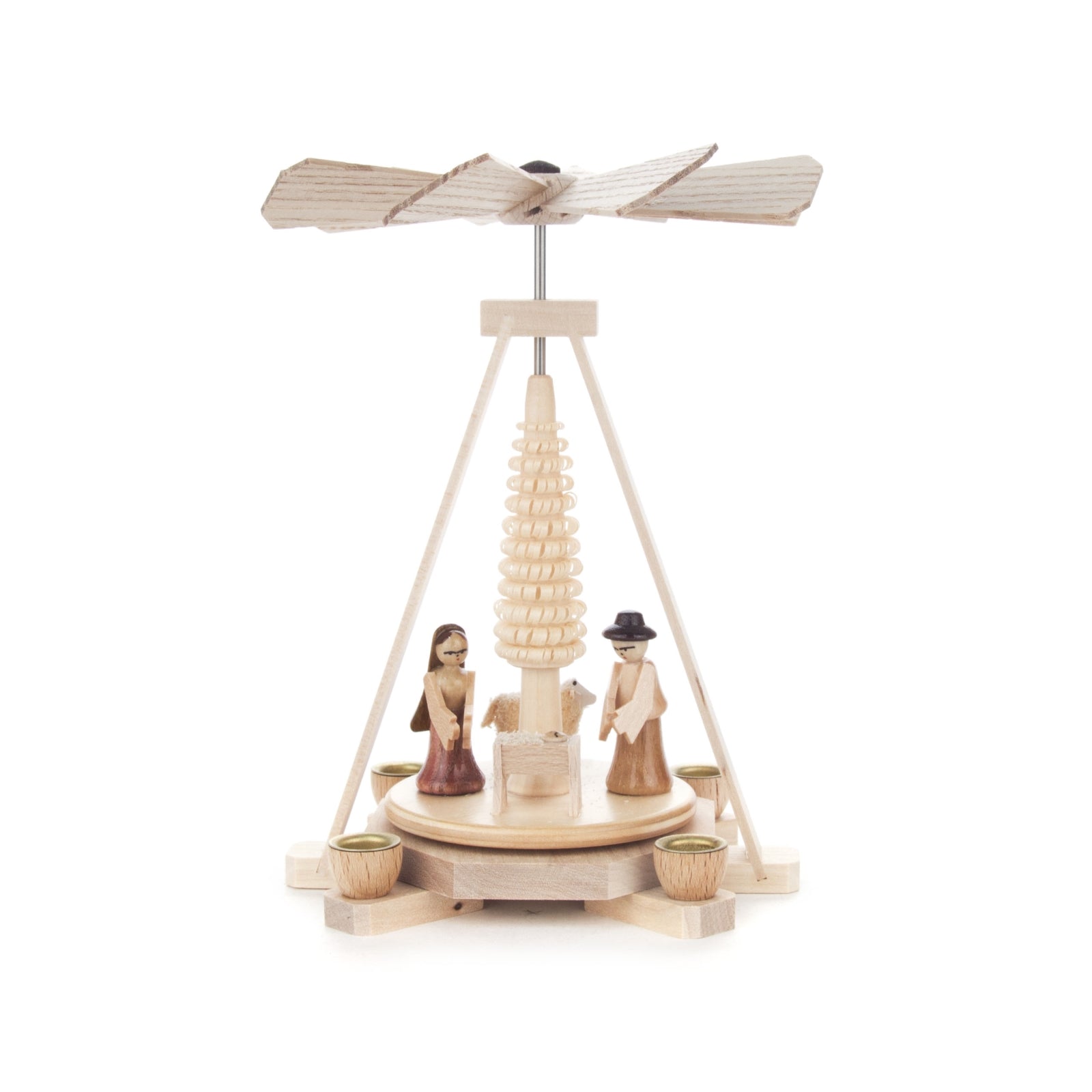 Mini Pyramid with Nativity Scene Candle Holder. German Wood. Handcrafted in the Erzgebirge region of Germany