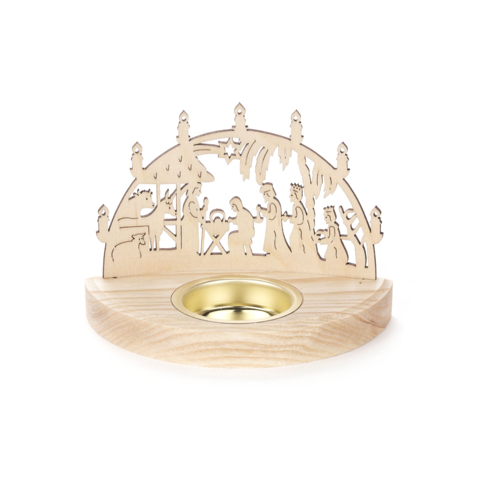 Pinnacle Peak Trading German Wood Tealight Holder Nativity Scene 4.7 Inch