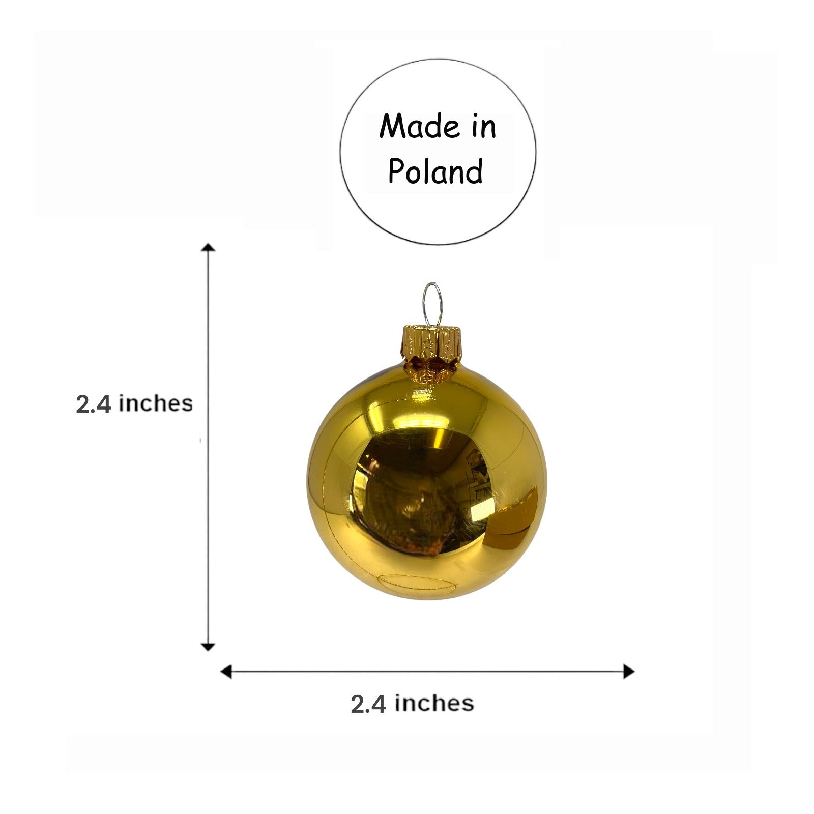 Pinnacle Peak Trading Gold Shiny and Matte Polish Glass 60mm Ball Bauble Ornaments 6 Piece Made in Poland 2.4 Inch