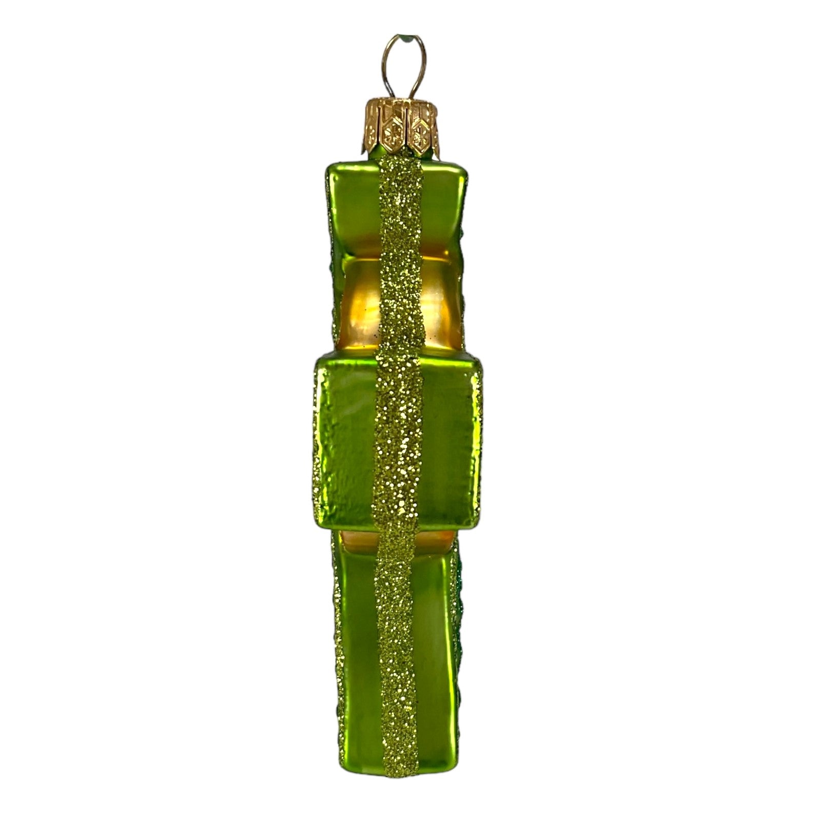 Green Celtic Cross Ornament. Handcrafted in Poland. Hand painted by Polish artisans. Made from mouth blown glass. Approximately 4.5 inches tall. Includes original manufacturers box and packaging. Imported by Pinnacle Peak Trading Company.