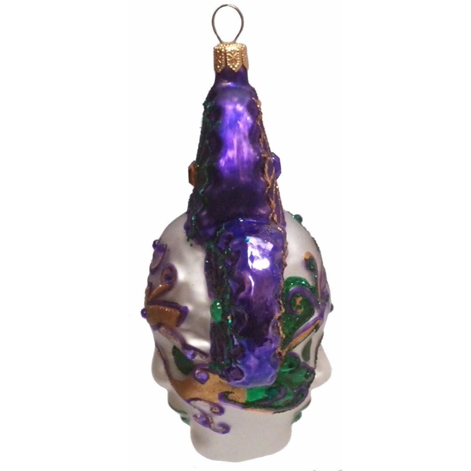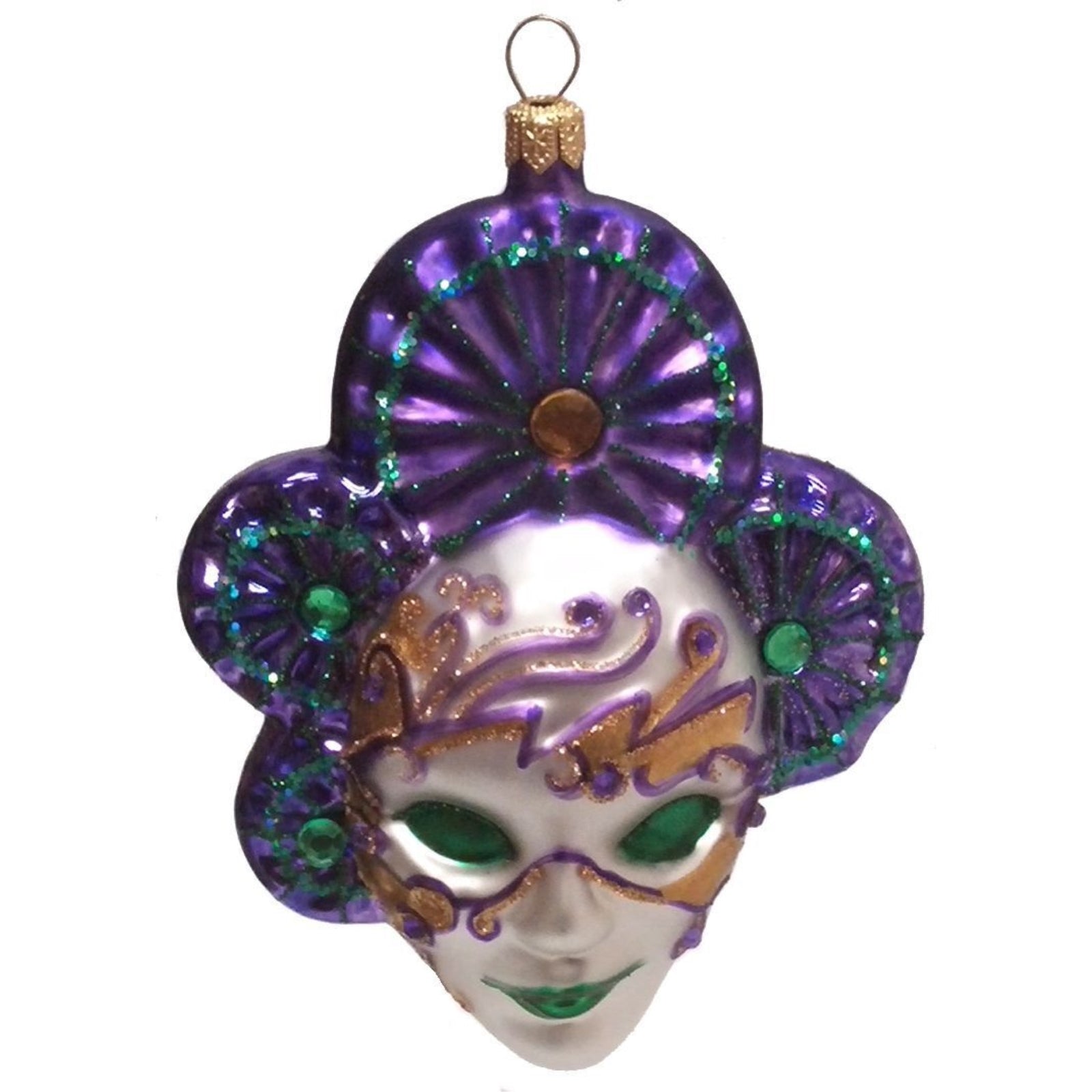 Pinnacle Peak Trading Green and Purple Venetian Mask Polish Blown Glass Christmas Ornament