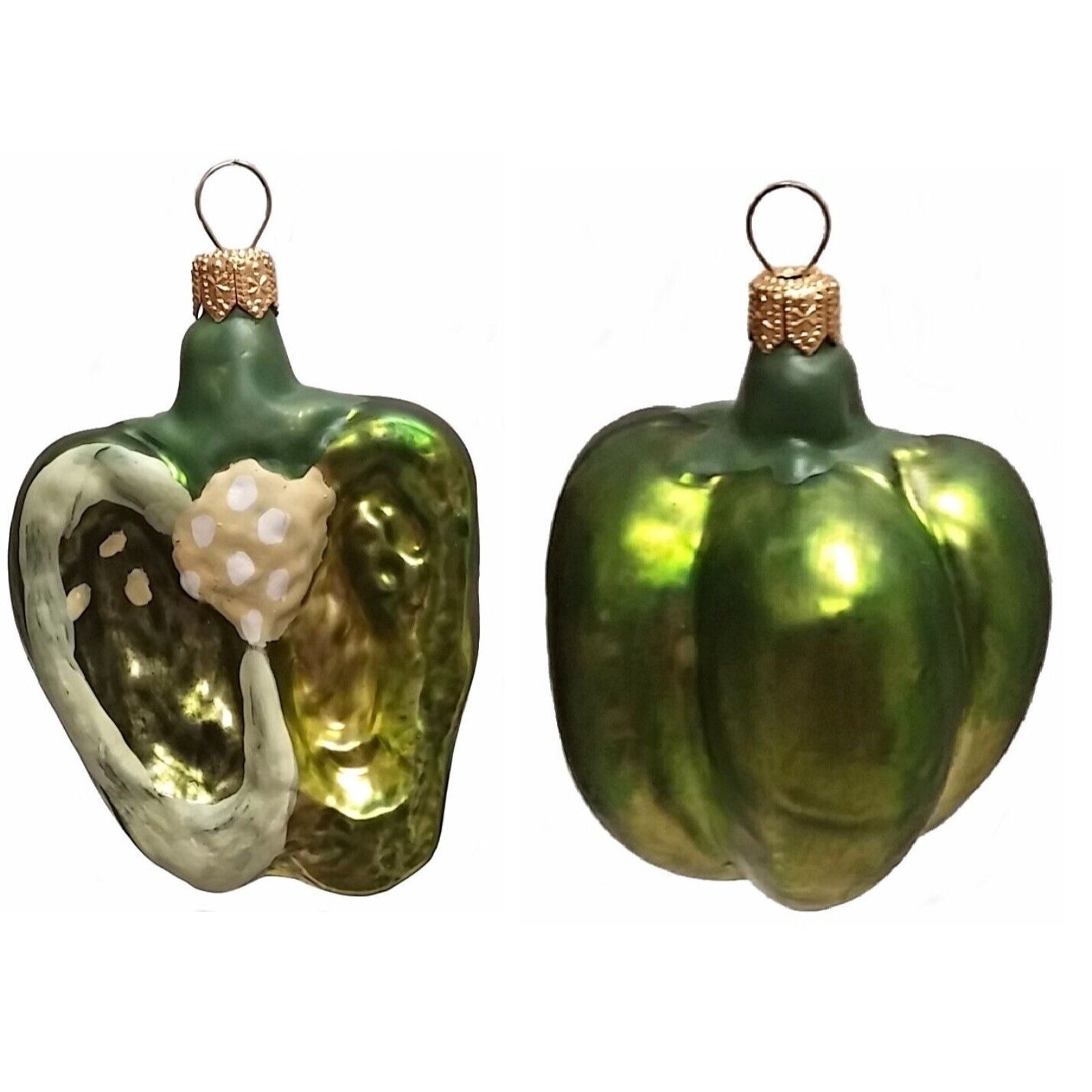 Pinnacle Peak Trading Half of a Green Bell Pepper Polish Glass Christmas Ornament Set of 2