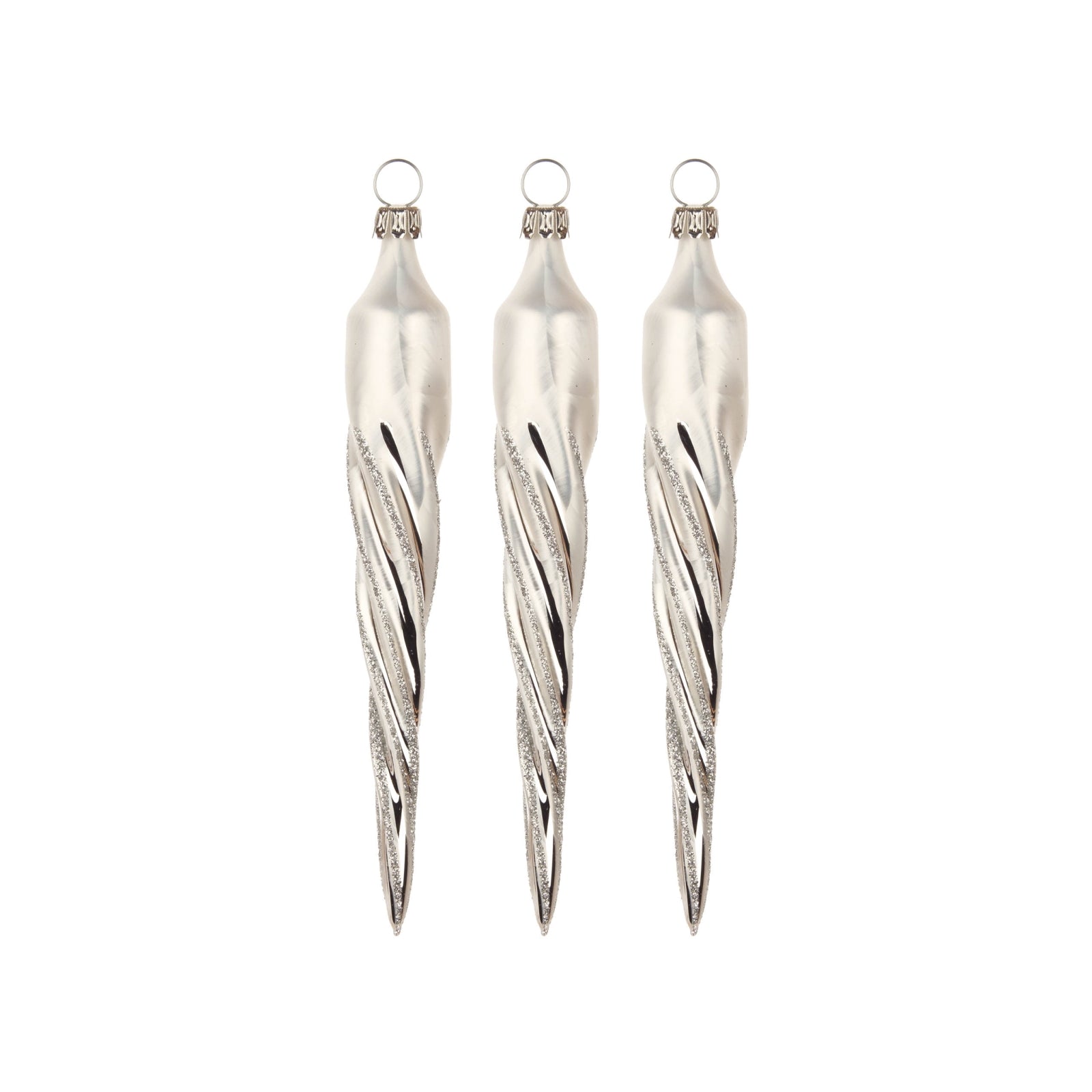 Icicle White Ornament. German Glass. Handcrafted in the Erzgebirge region of Germany. 5in H (12.7cm). Pinnacle Peak Trading