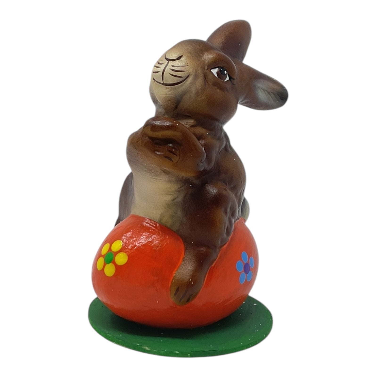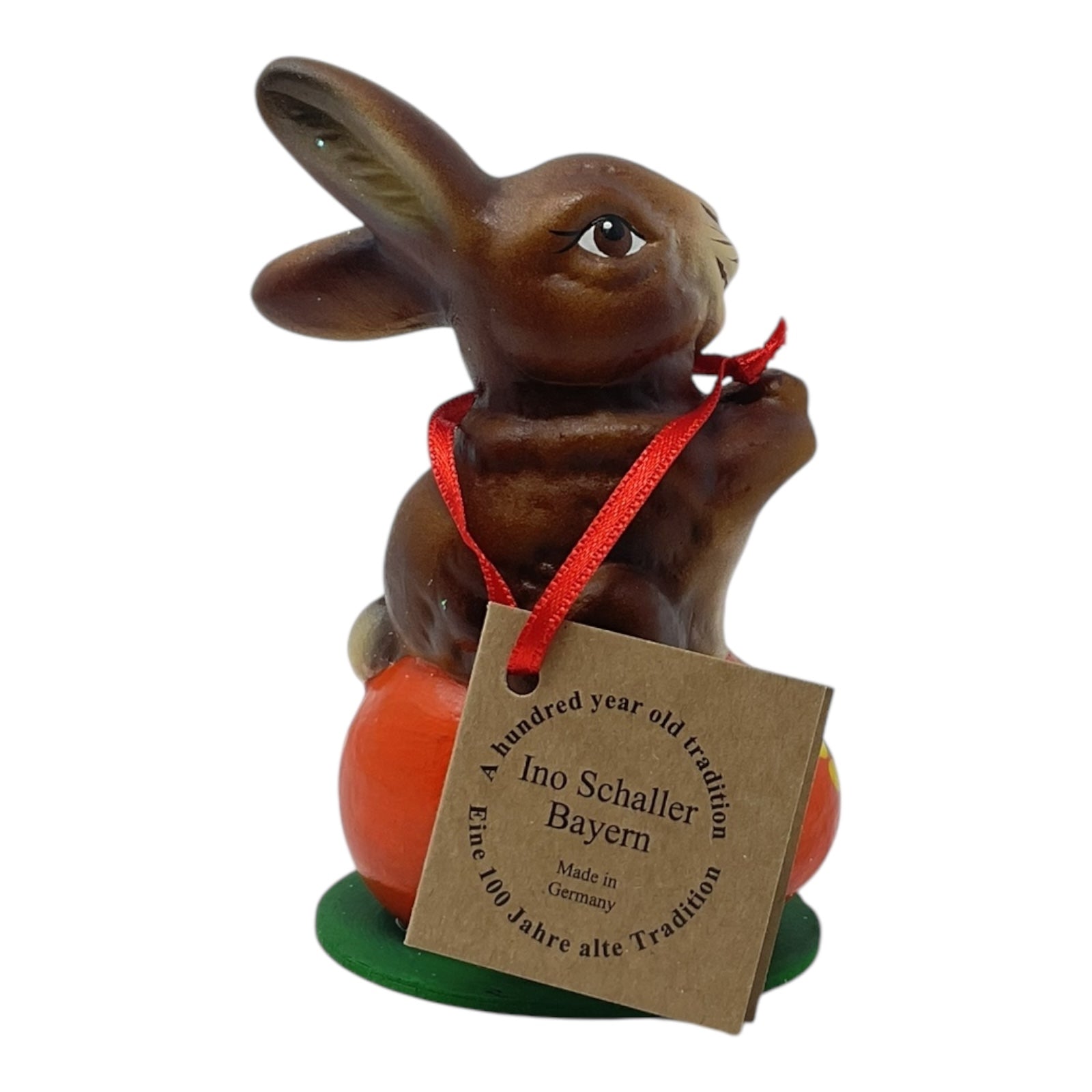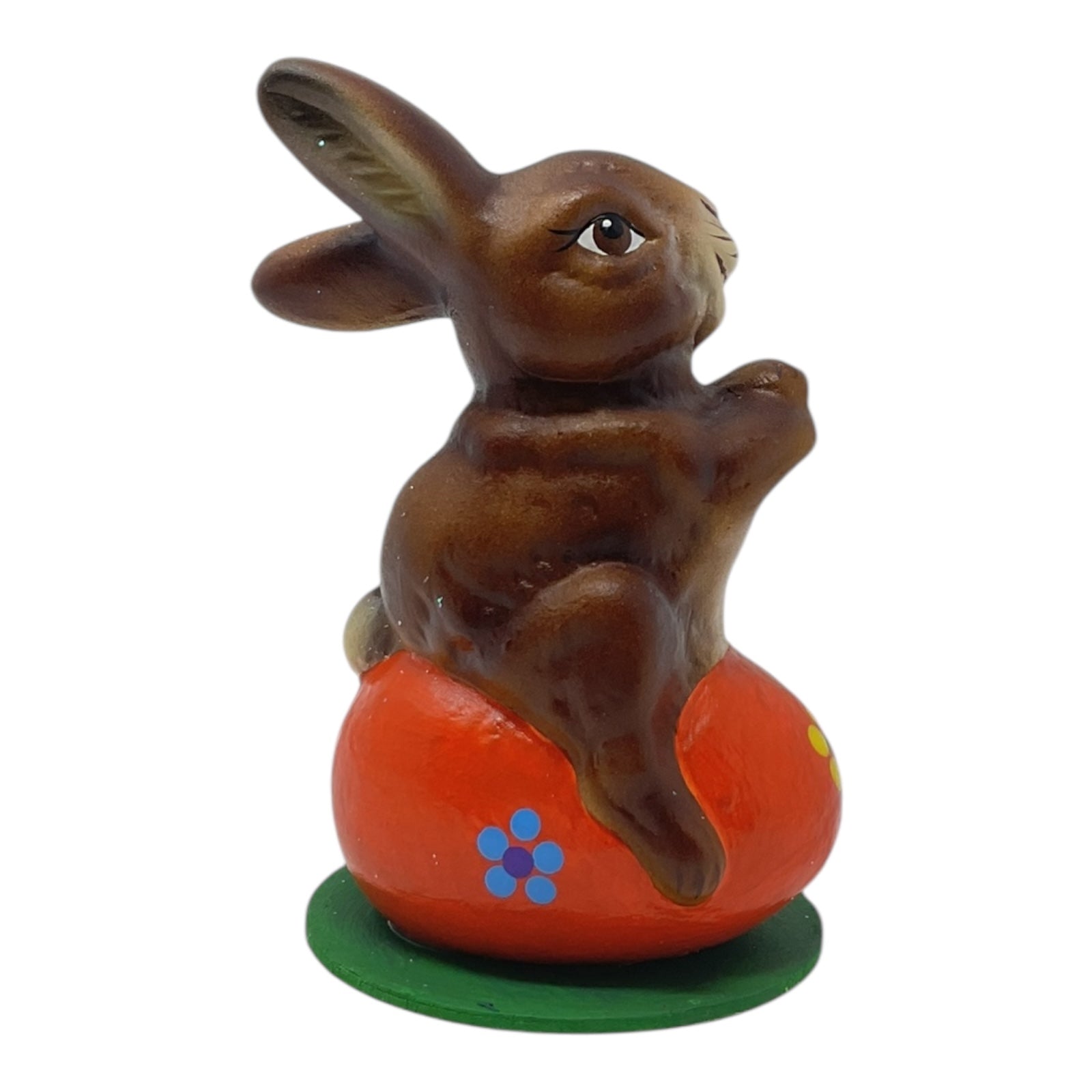 Pinnacle Peak Trading Ino Schaller Easter Bunny Rabbit on Orange Egg German Paper Mache 4.25 inch