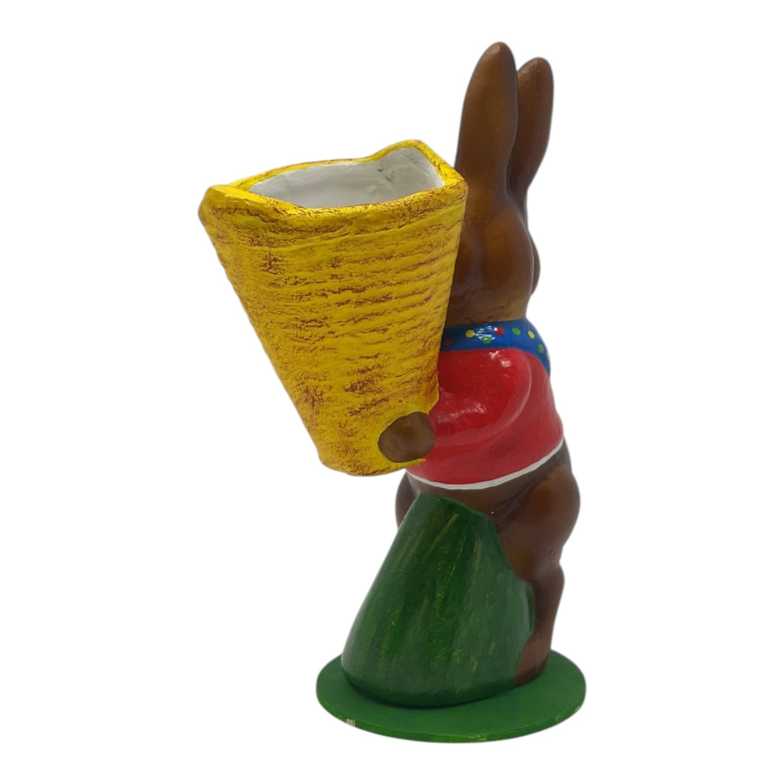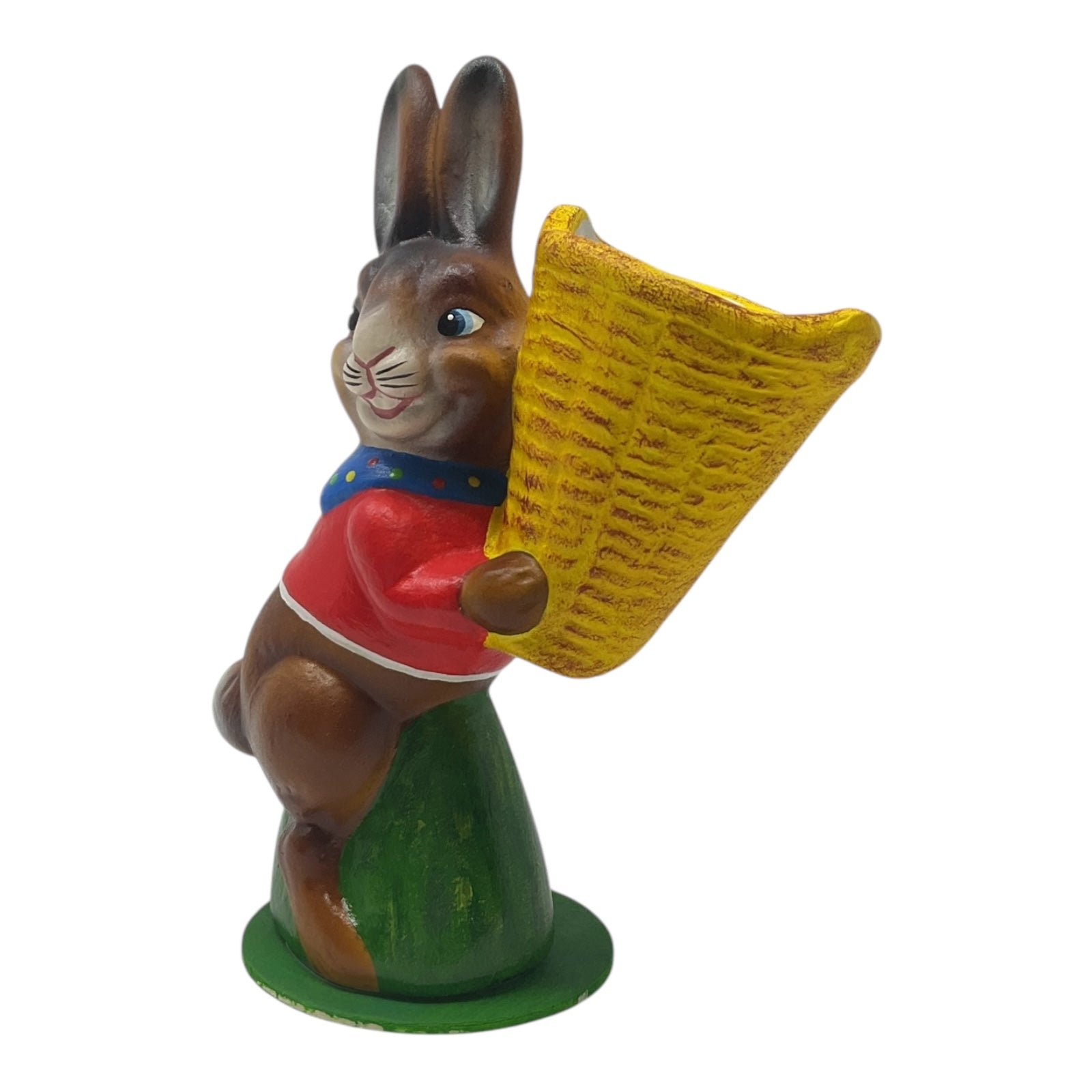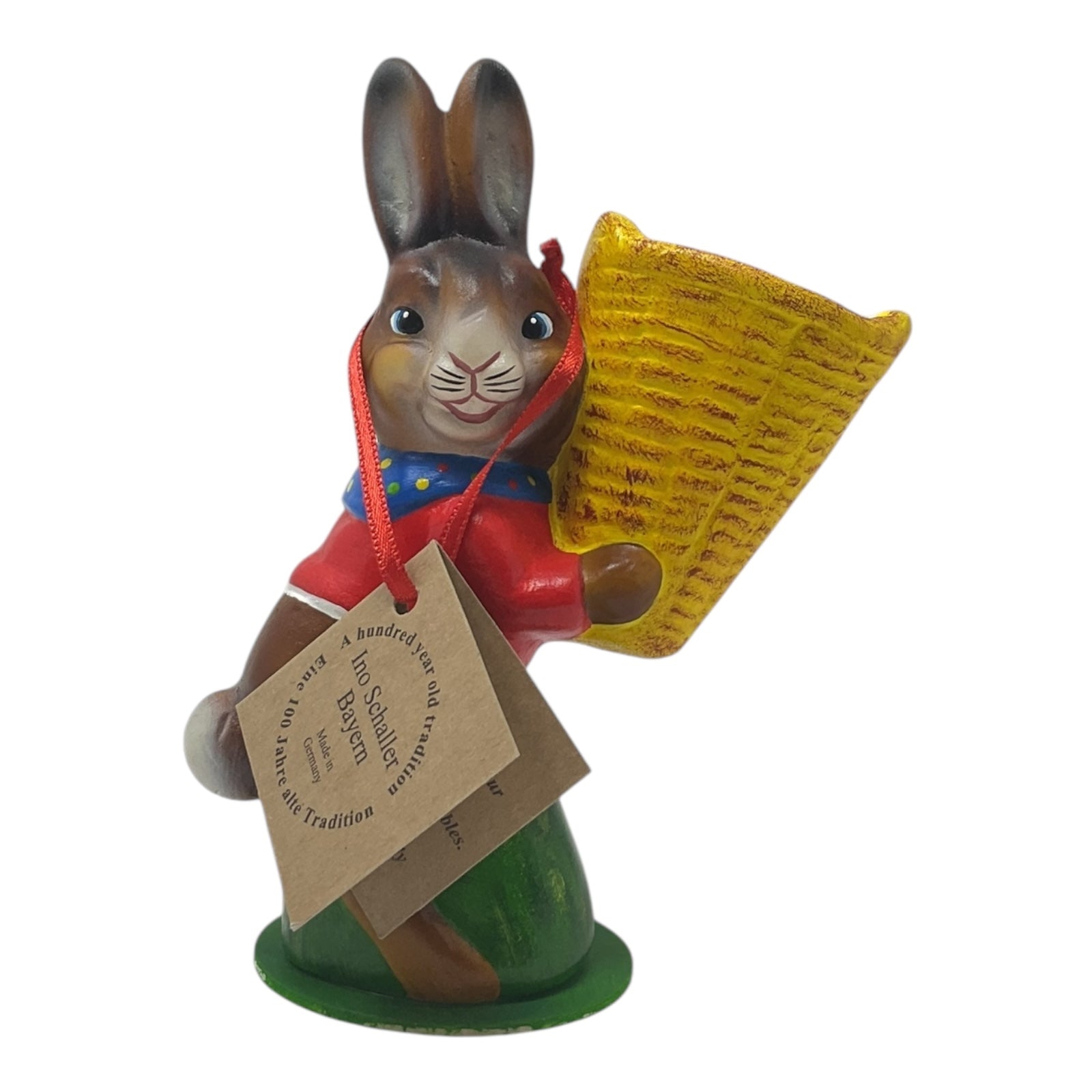 Pinnacle Peak Trading Ino Schaller Easter Bunny Rabbit with Yellow Basket German Paper Mache 5.75 inch