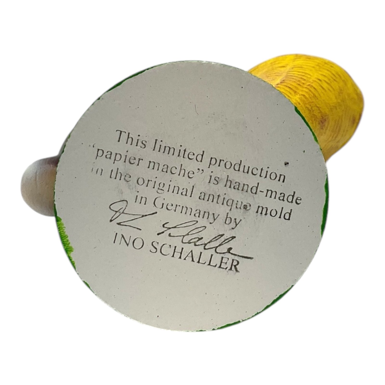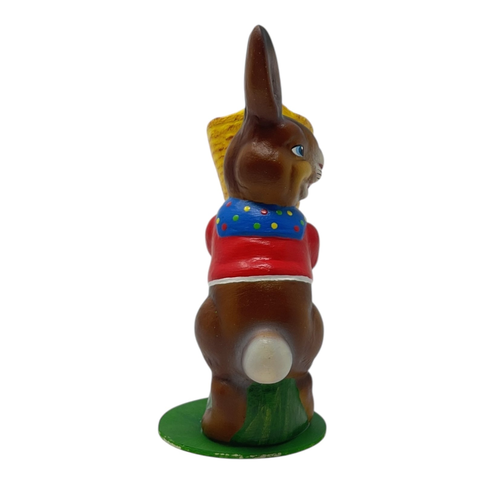 Easter Bunny Rabbit Sitting Paper Mache. Hand-painted. Made from paper mache. Handcrafted in Bavaria, Germany. Approximately 4 x 2.25 x 5.75 inches (10 x 6 x 15 cm). Manufactured for Pinnacle Peak Trading by Ino Schaller. Each piece is signed and stamped on the bottom with the following "This limited production "papier mache" is hand-made in the original antique mold in Germany by INO SCHALLER."