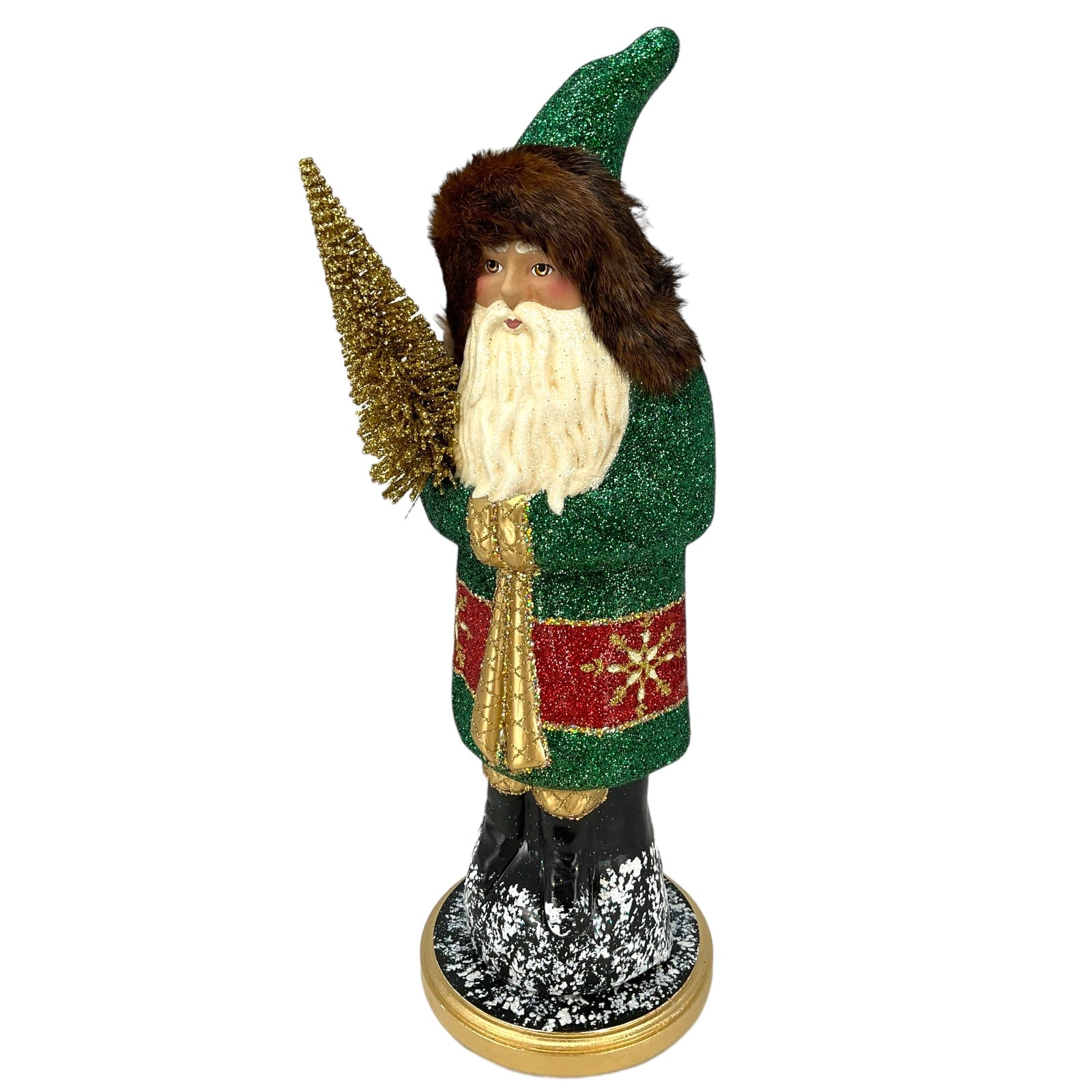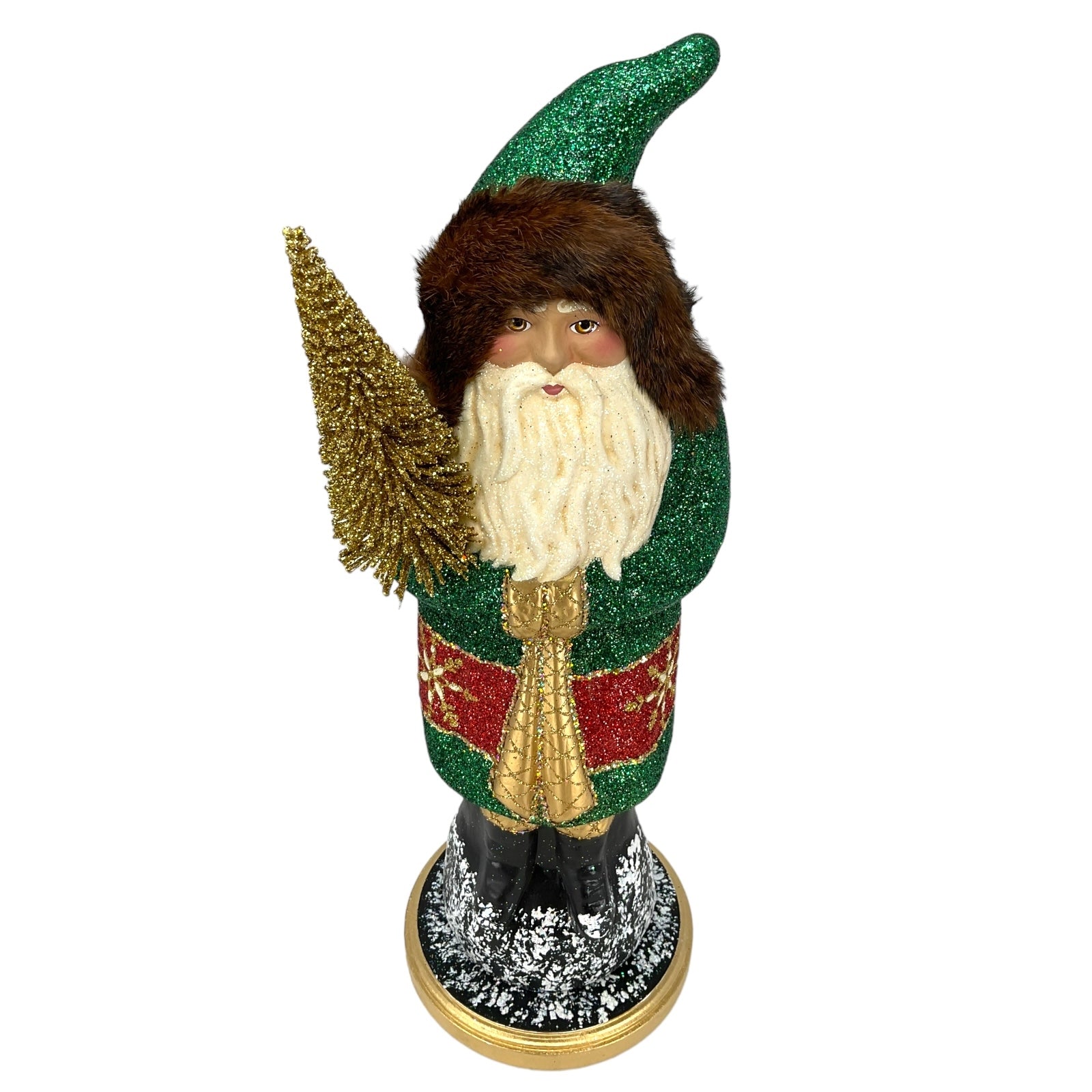 Pinnacle Peak Trading Ino Schaller Forest Green Santa with Gold Tree Large German Paper Mache