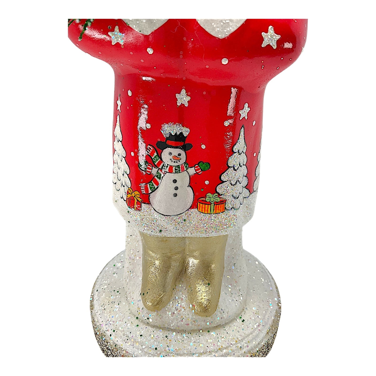 Pinnacle Peak Trading Ino Schaller Red Santa with Snowman Scene German Paper Mache