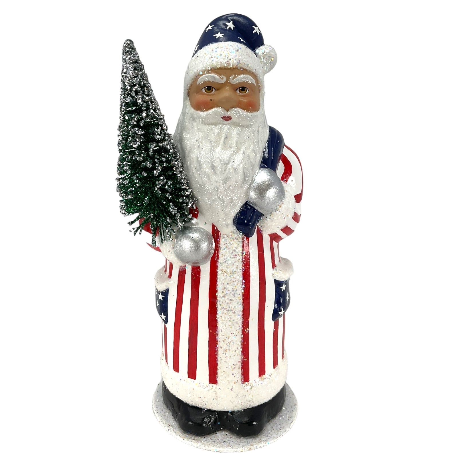 Pinnacle Peak Trading Ino Schaller Stars and Stripes American Santa German Paper Mache Candy Container