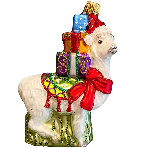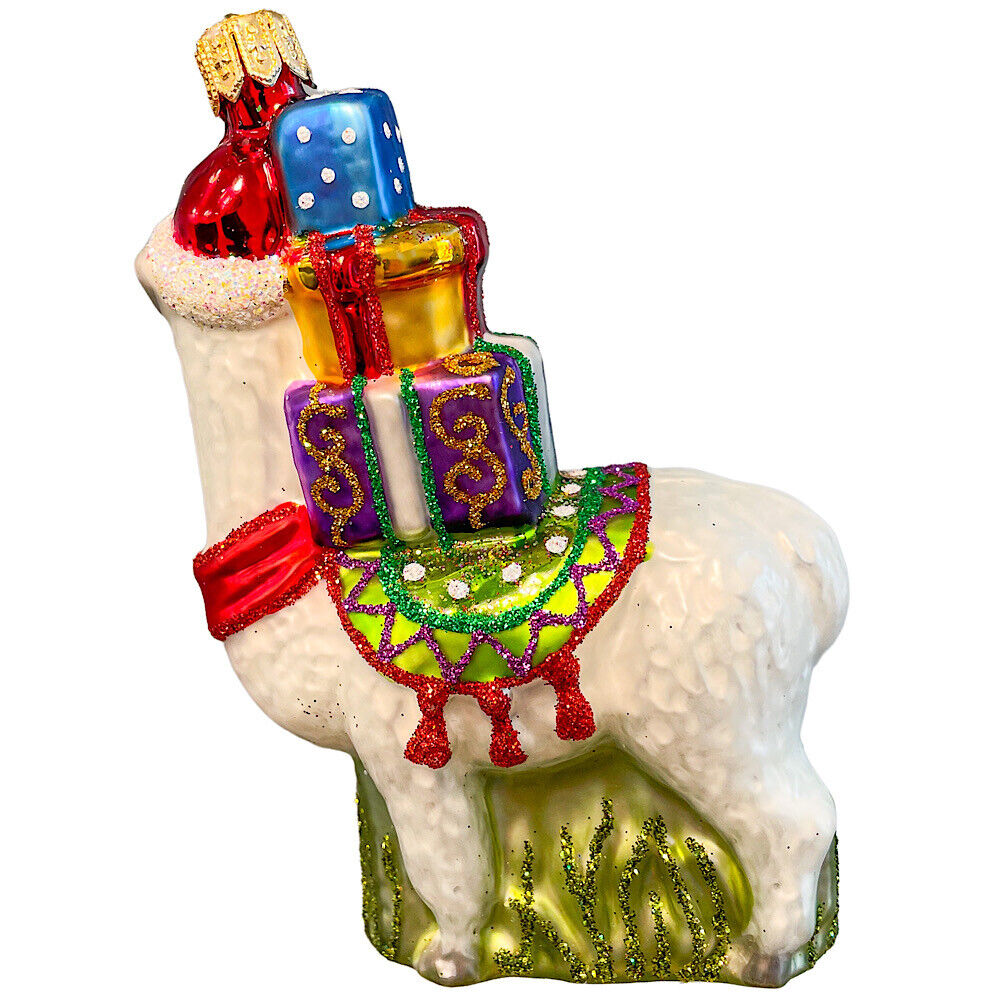 Pinnacle Peak Trading Llama with Presents Polish Glass Christmas Tree Ornament