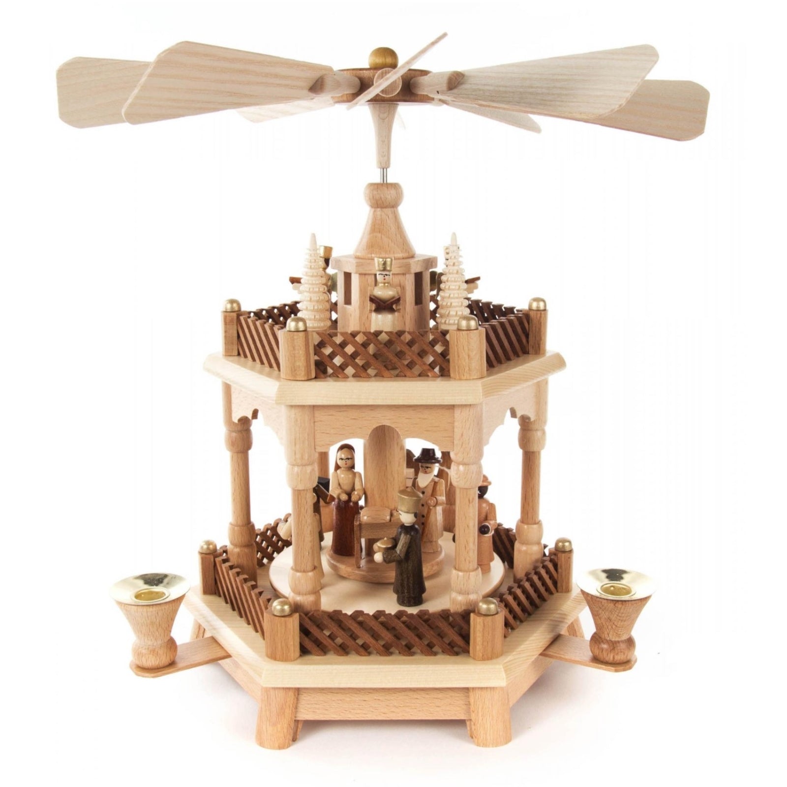 Pinnacle Peak Trading Nativity Natural 1 Tier German Wood Pyramid 12.6 Inch