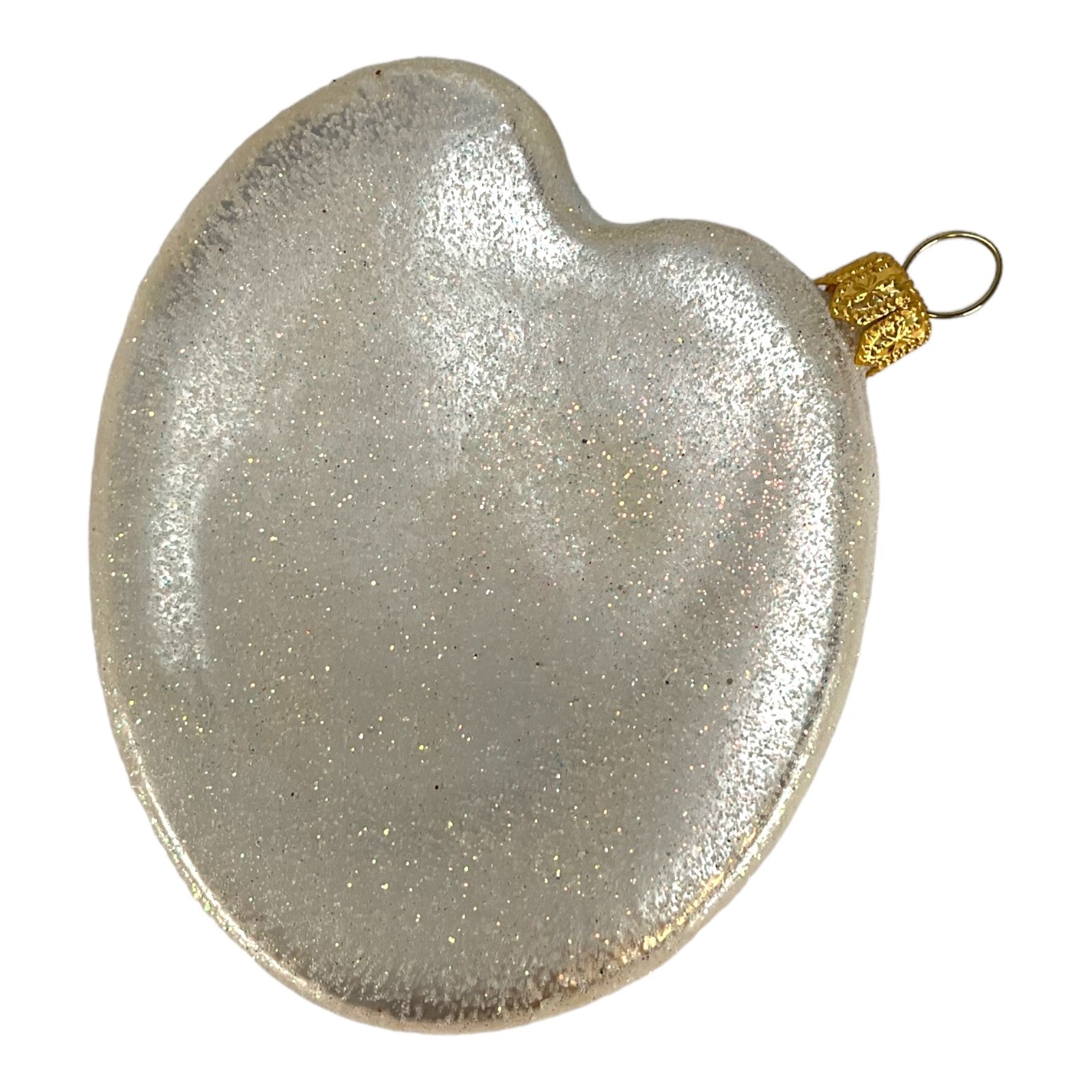 Paint Palette Ornament. Handcrafted in Poland. Hand-painted by Polish artisans. Made from mouth blown glass. Approximately 3 inches tall. Includes original Pinnacle Peak Trading box and packaging. Imported by Pinnacle Peak Trading Company.