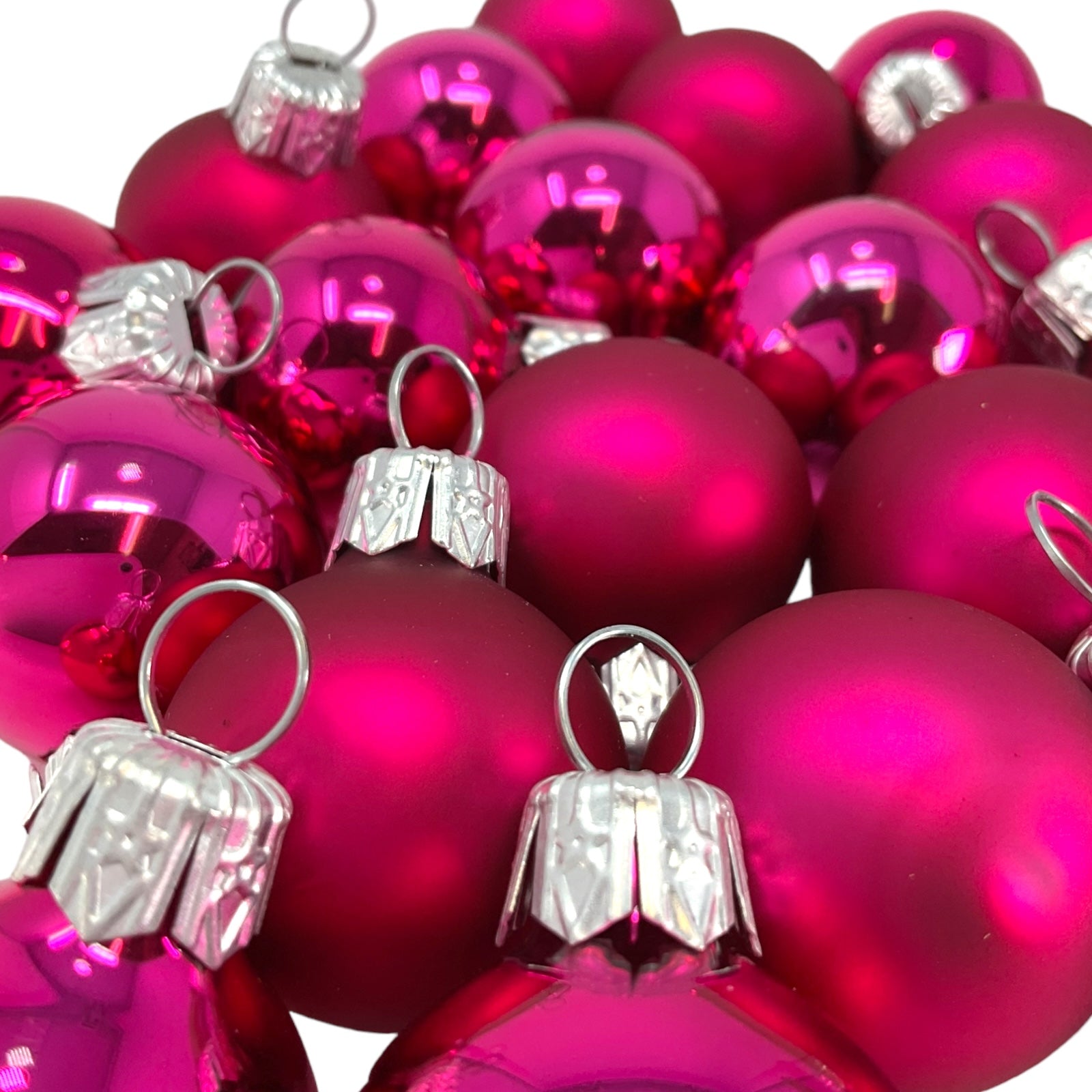 Pink Christmas Ball Set. Set includes 20 ornaments - 10 matte and 10 shiny. Made in Poland. Made from glass. Balls are 30 mm in size (1.2 inch). High quality European ornament from Pinnacle Peak Trading.