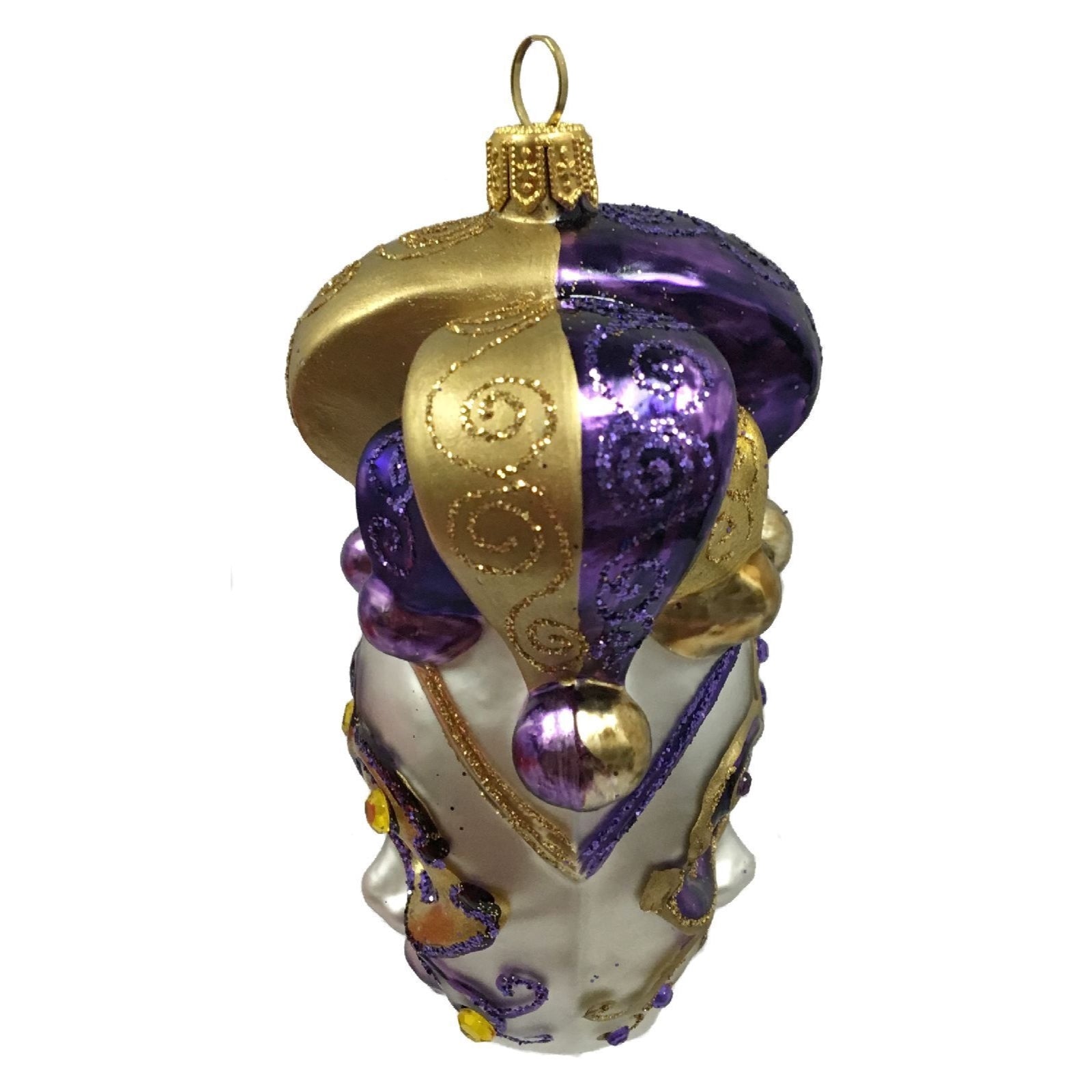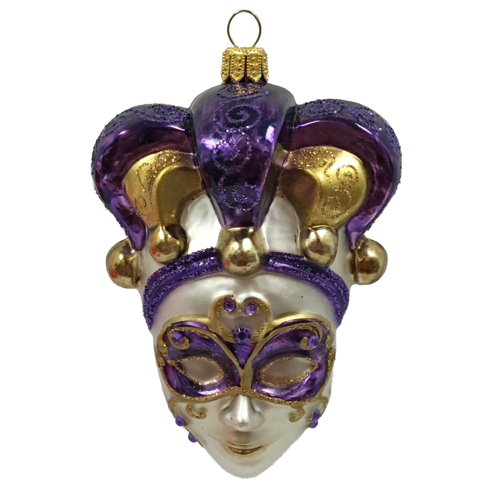 Pinnacle Peak Trading Purple and Gold Venetian Mask Polish Glass Christmas Tree Ornament Mardi Gras