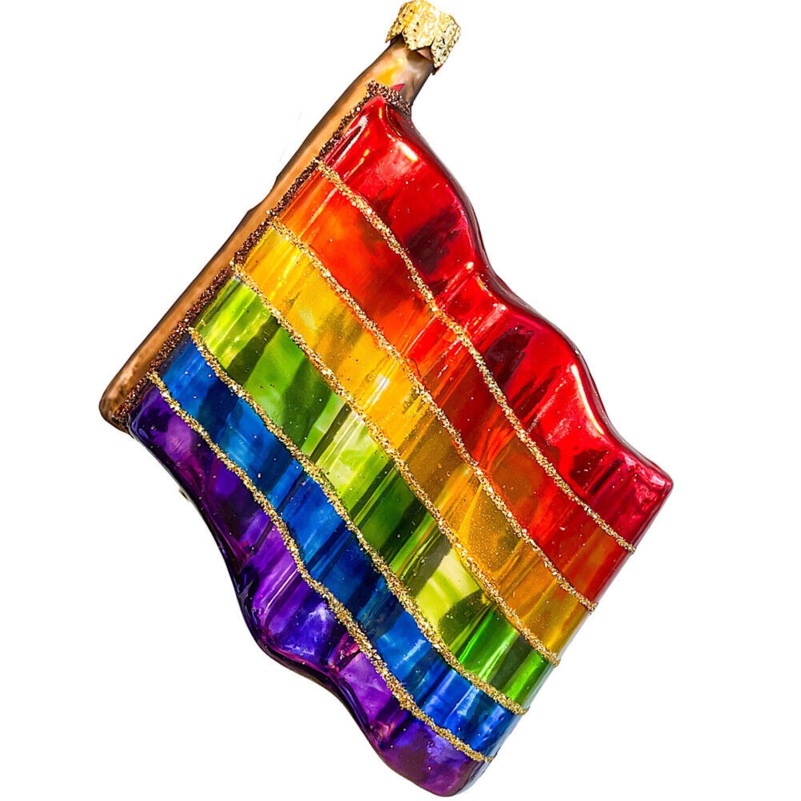 Pinnacle Peak Trading Rainbow Pride Flag Polish Glass Christmas Tree Ornament