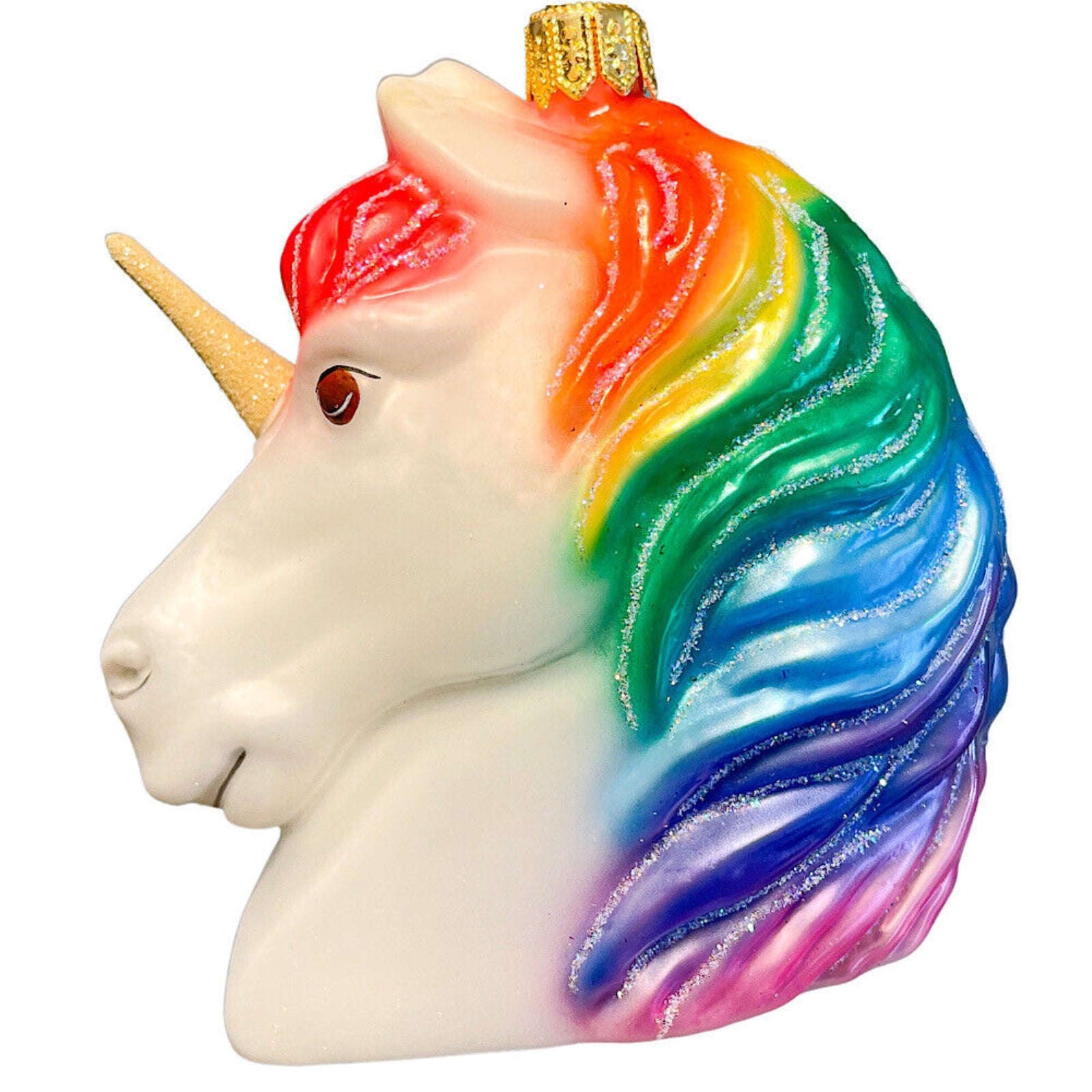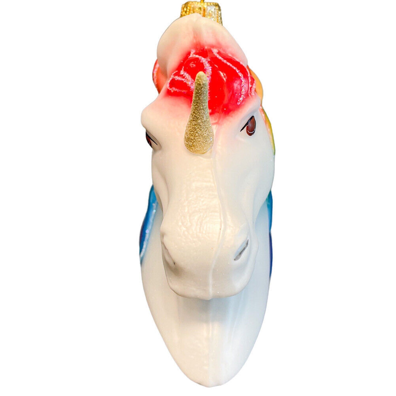 Pinnacle Peak Trading Rainbow Unicorn Head Polish Glass Christmas Tree Ornament
