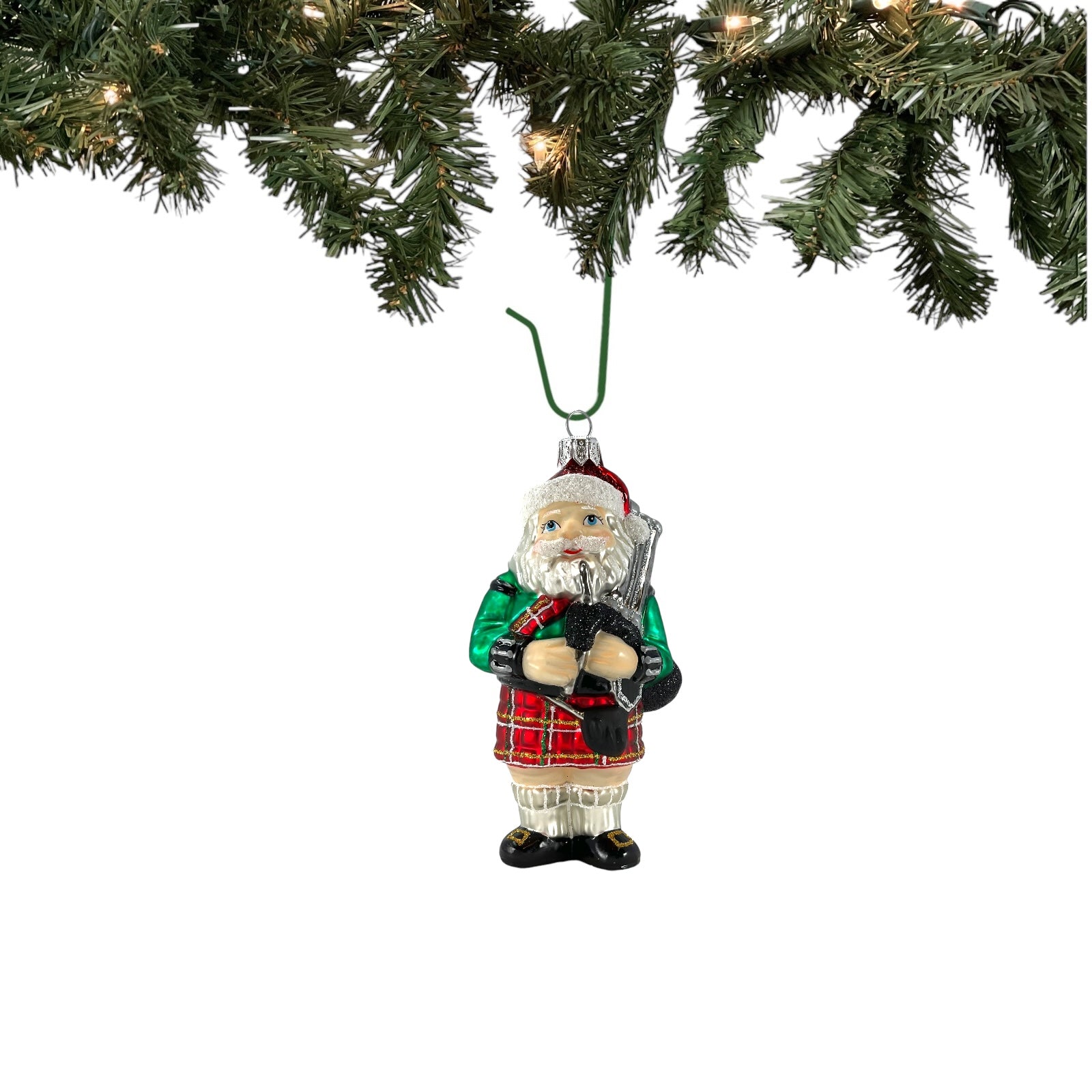 Pinnacle Peak Trading Scottish Santa Wearing Kilt with Bagpipes Polish Glass Christmas Ornament 5 inch