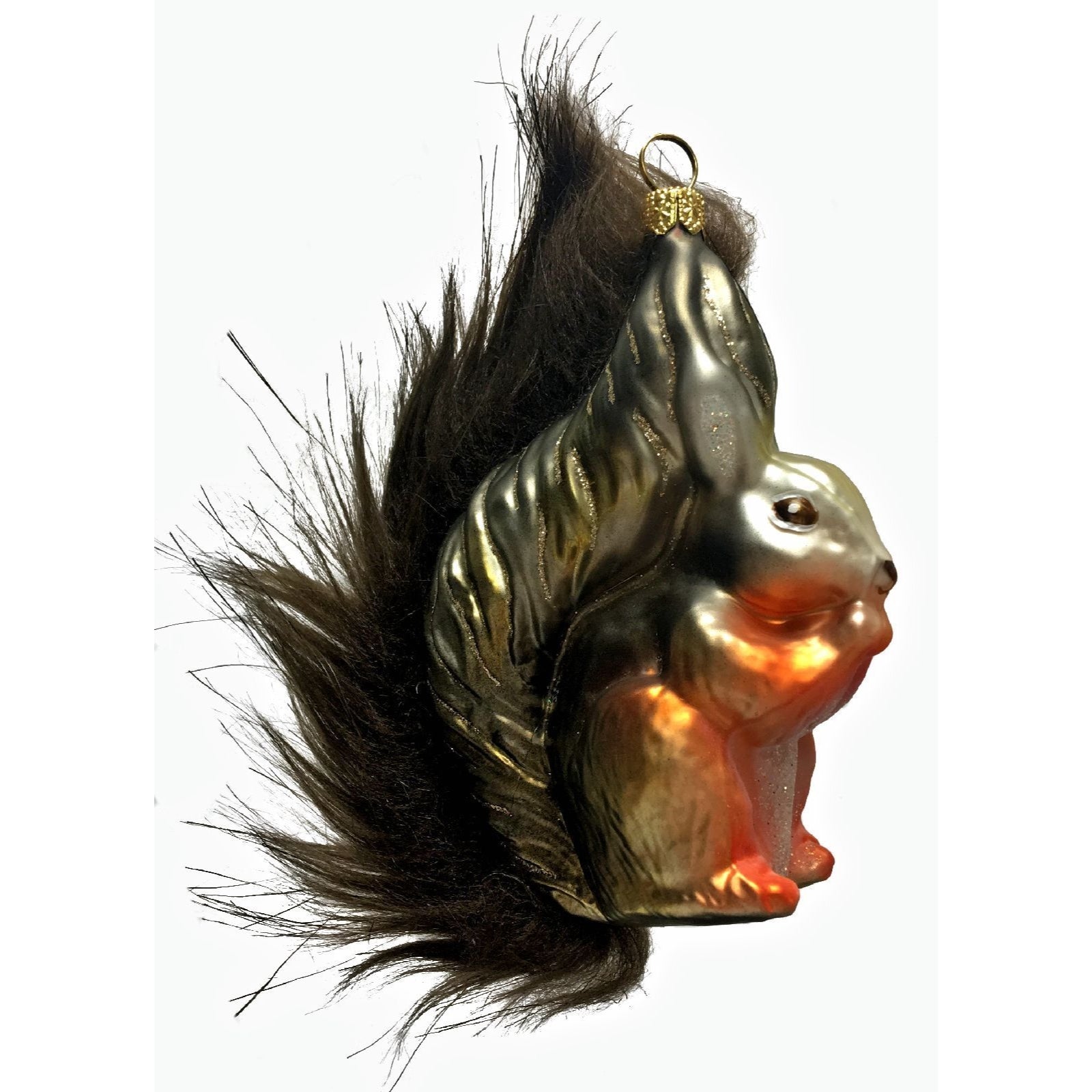 Pinnacle Peak Trading Squirrel with Fur Tail Polish Glass Christmas Ornament Animal Wildlife Poland