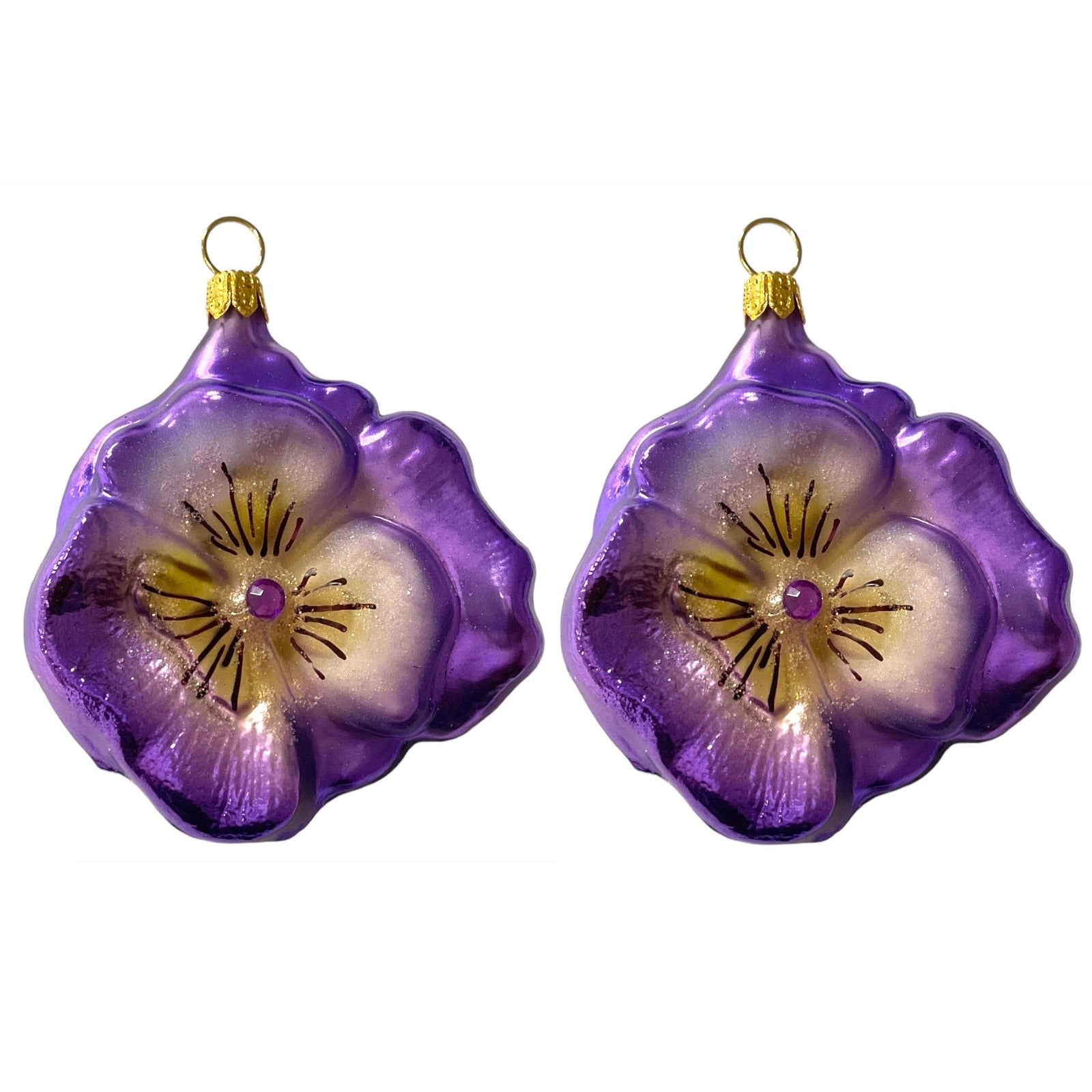 Purple Flower Polish Glass Christmas Tree Ornaments Set of 2
