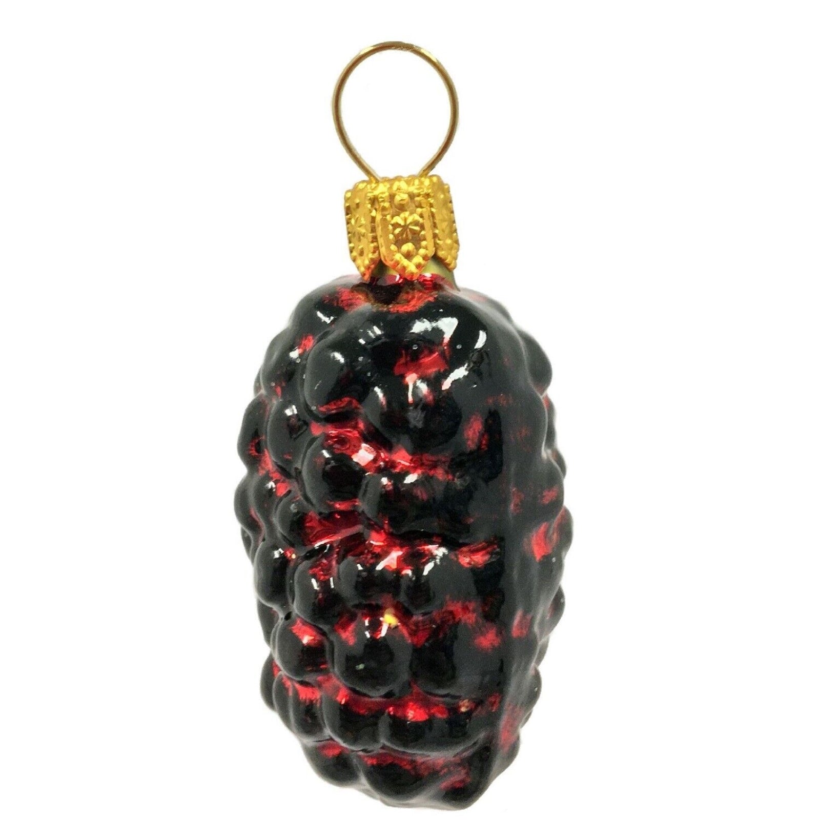Red and Black Mulberries Polish Glass Christmas Ornament Set of 3 Mulberry Fruit