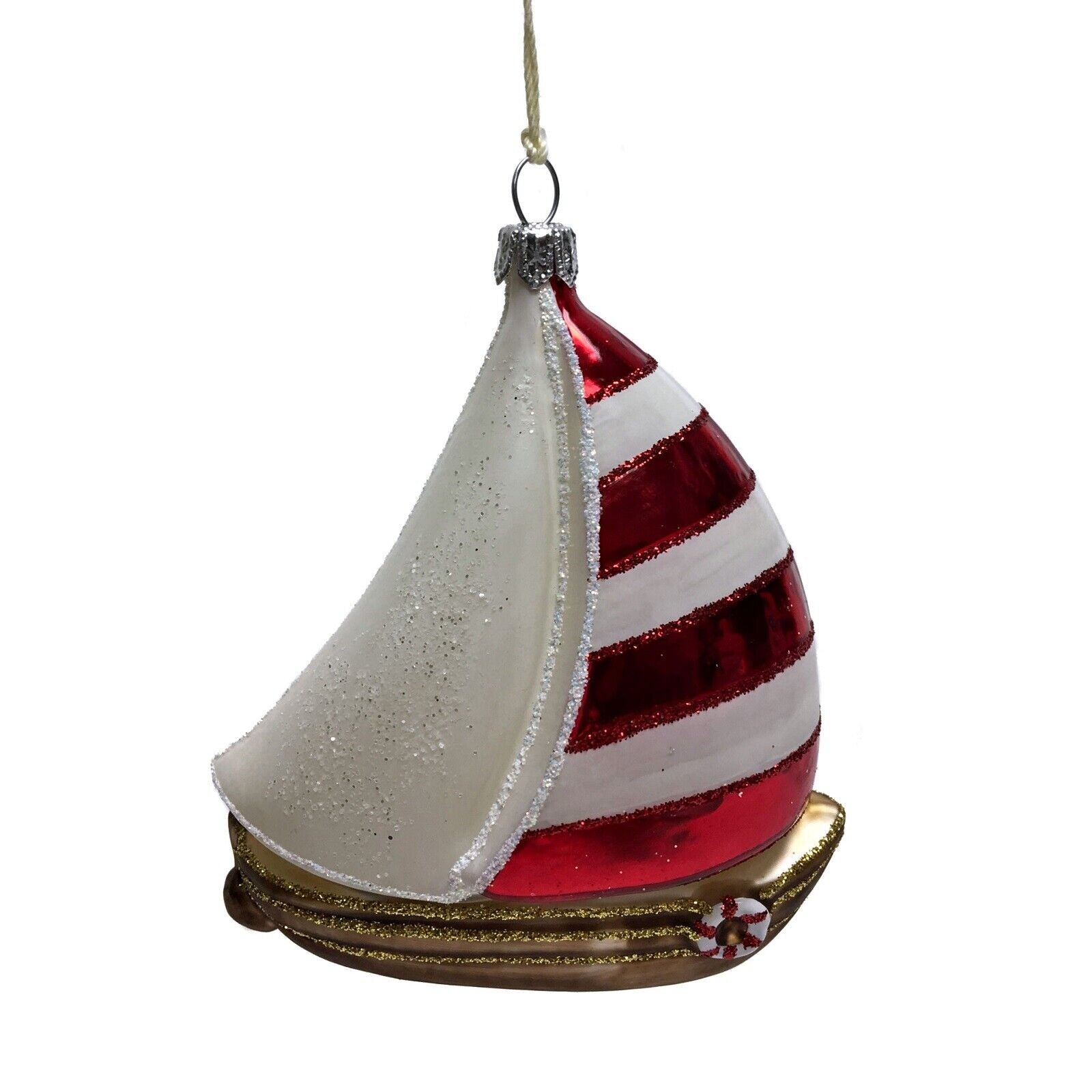 Red and White Striped Sail Boat Polish Glass Christmas Tree Ornament Mail Poland
