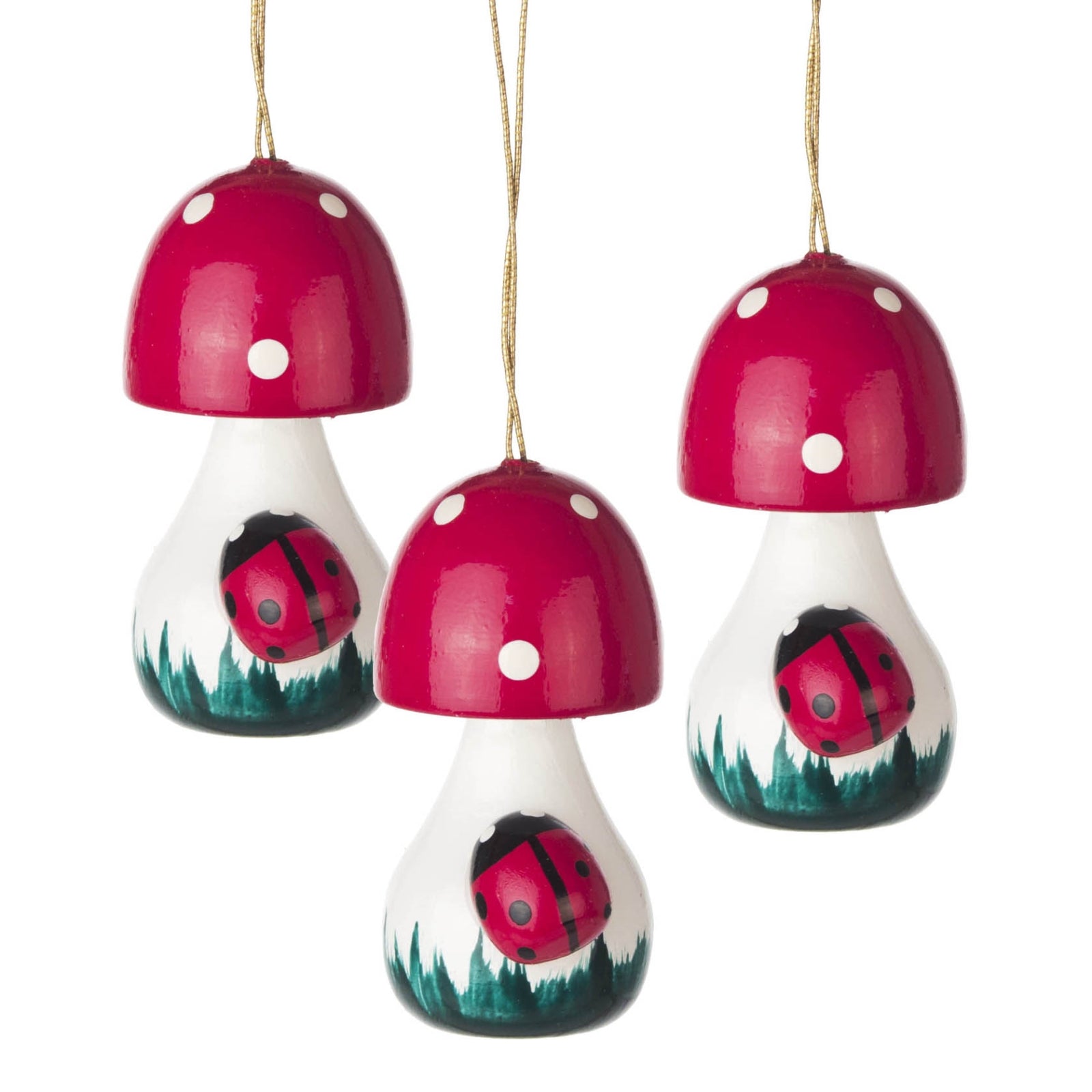Red Mushroom with Ladybug German Wood Christmas Ornament Set Made in Germany