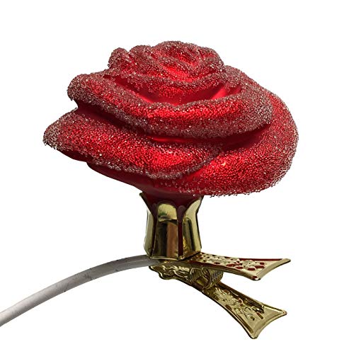Red Rose Clip on Flower Polish Glass Christmas Tree Ornament Floral Decoration