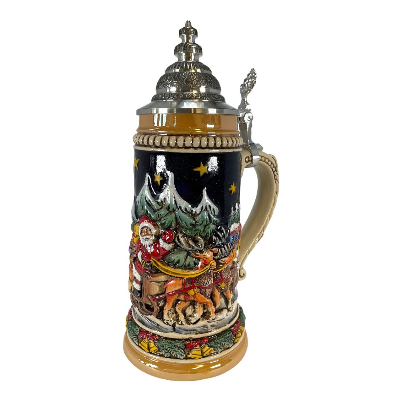 Santa Claus Riding His Sleigh with Reindeer LE Christmas German Beer Stein .5 L