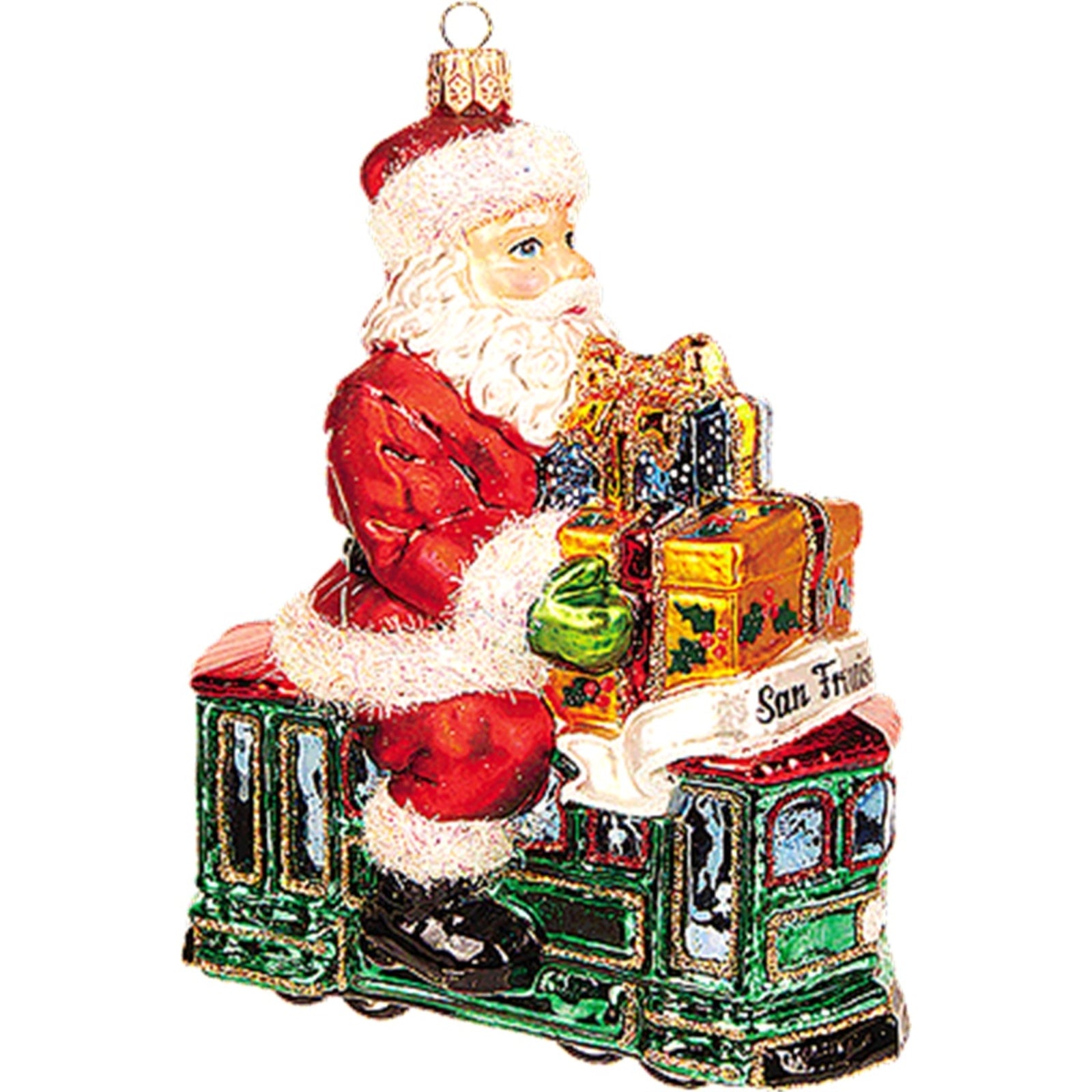 Santa in San Francisco Cable Car Polish Mouth Blown Glass Christmas Ornament