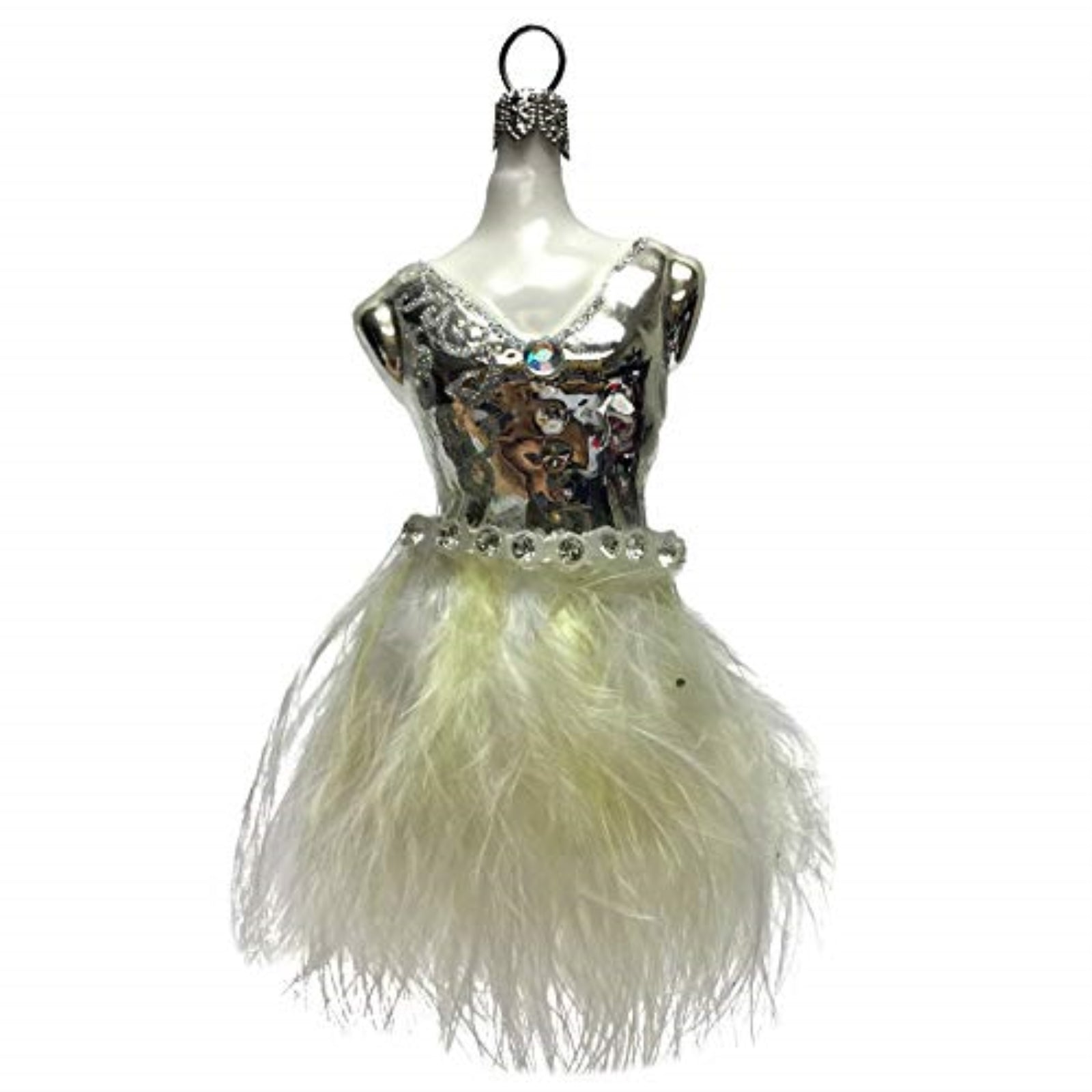 Silver Dress with White Yellow Feathers Polish Glass Christmas Ornament Fashion