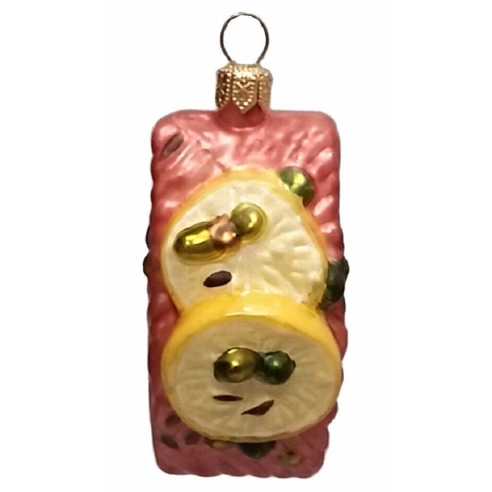 Slice of Salmon with Lemon Polish Glass Christmas Ornament Set of 2 Decorations