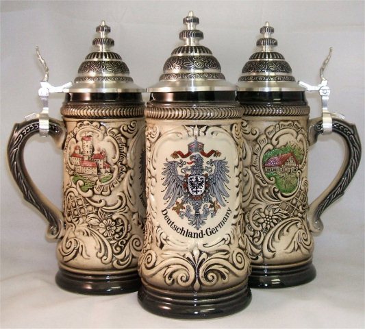 - The handpainted stein features Deutschland Eagle crest on the front.
