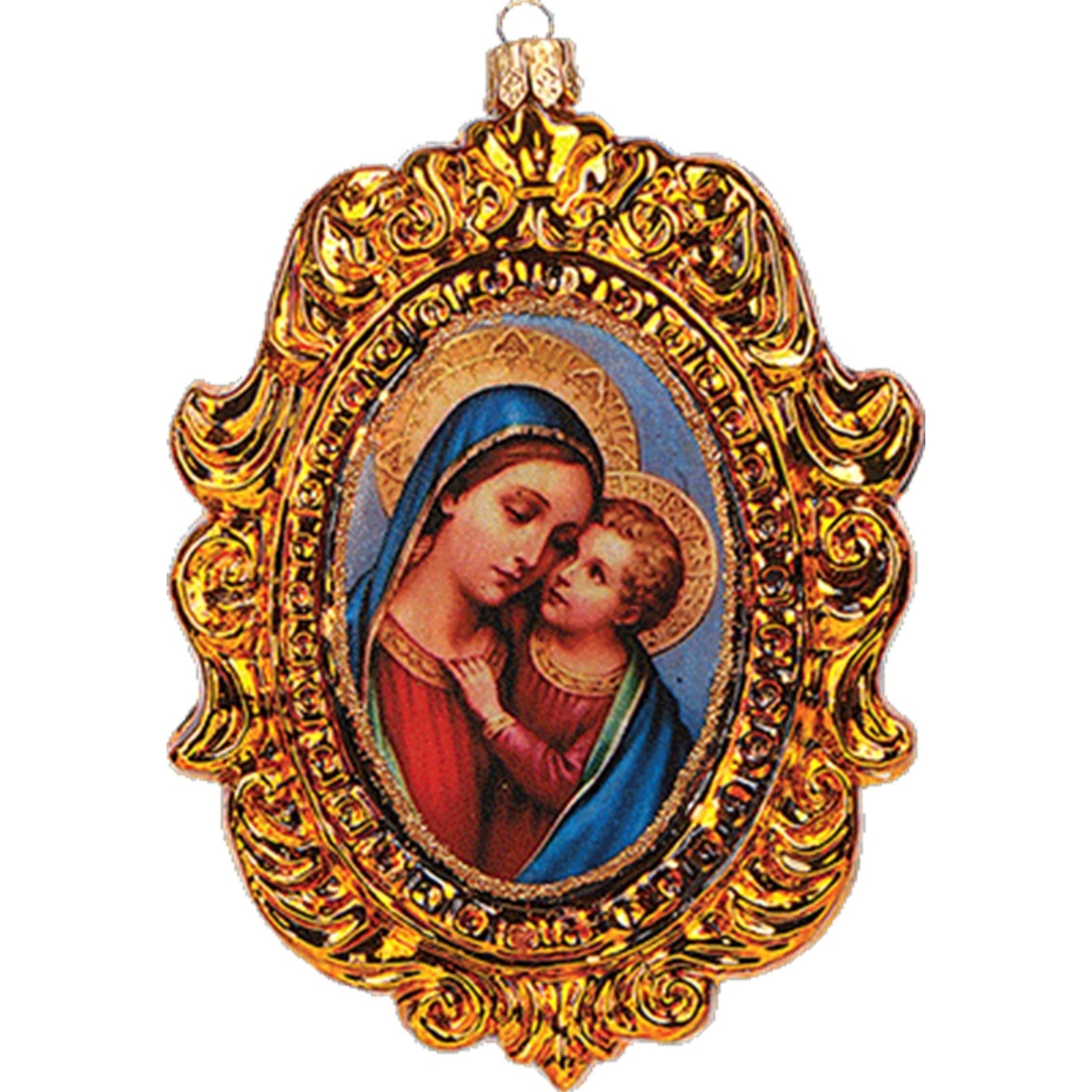 The Madonna with Baby Jesus Portrait Polish Mouth Blown Glass Christmas Ornament